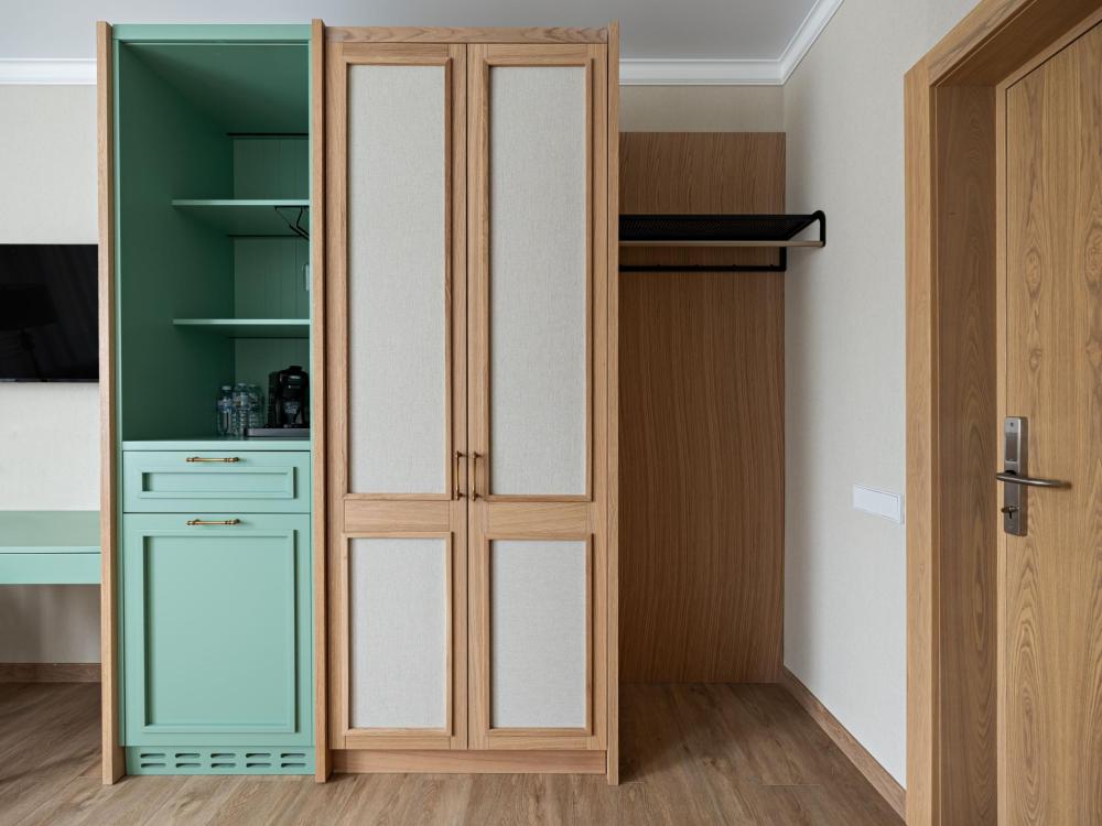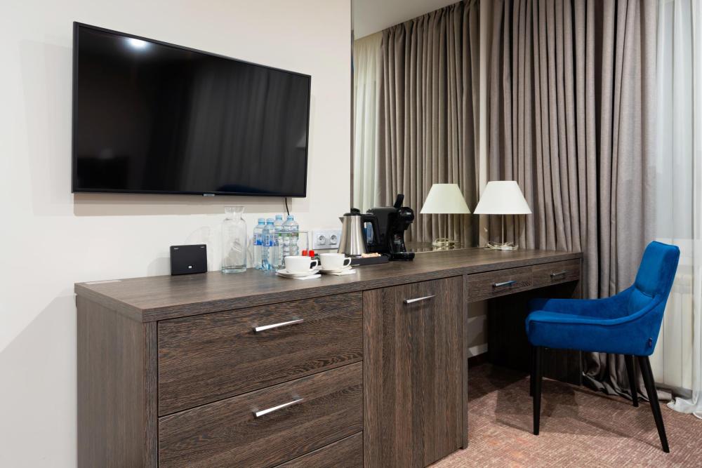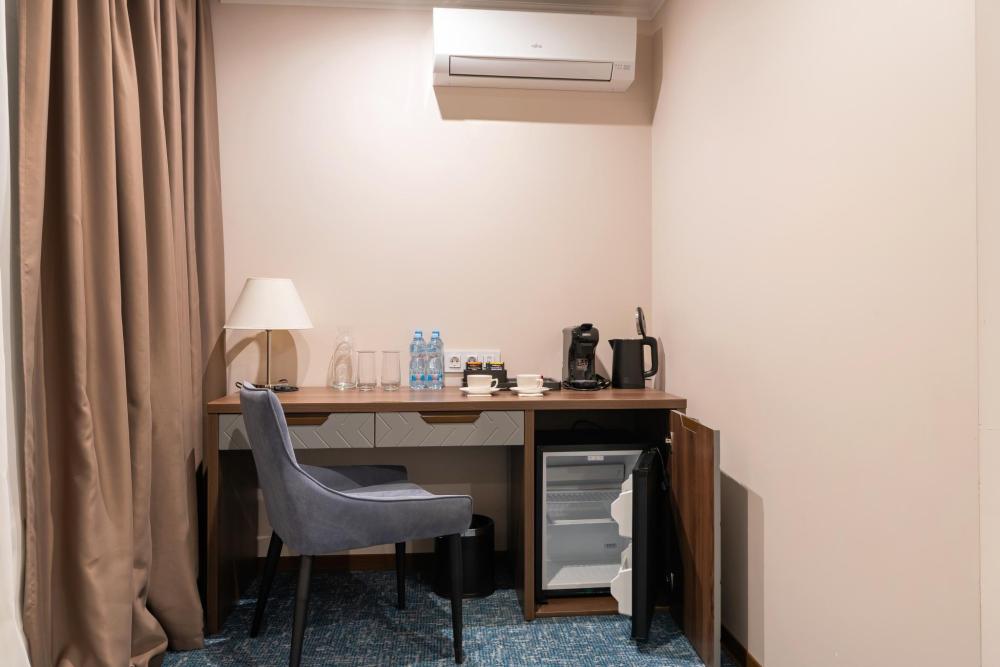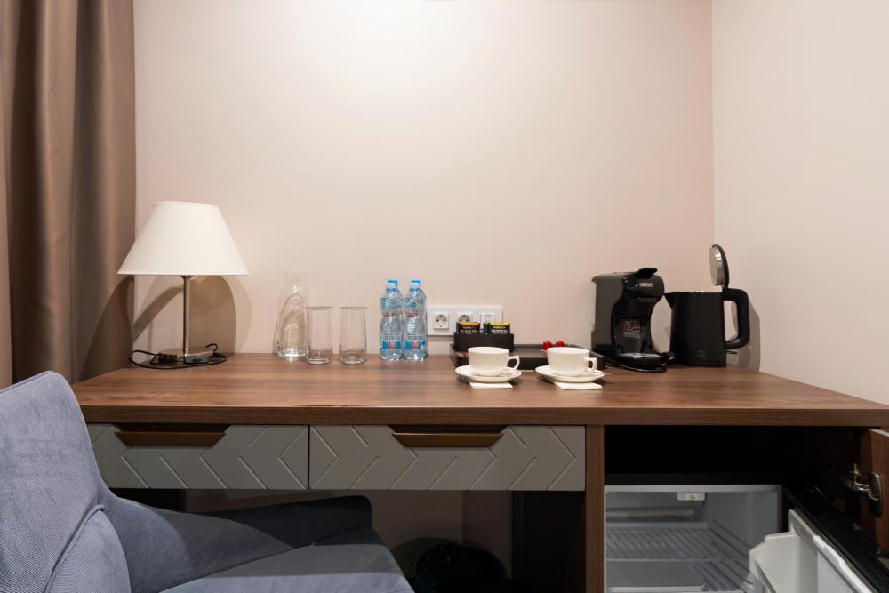 Уютный функциональный номер, оформленный в естественных природных оттенках с теплыми песочными текстурами и мягкими переливами. Пространство идеально сочетает комфорт и функциональность, создавая атмосферу для полноценного отдыха. В распоряжении гостей — кровати на выбор с анатомическими матрасами, а также меню подушек для индивидуального комфорта. Для удобства гостей предусмотрены все необходимое для приготовления чая и кофе.