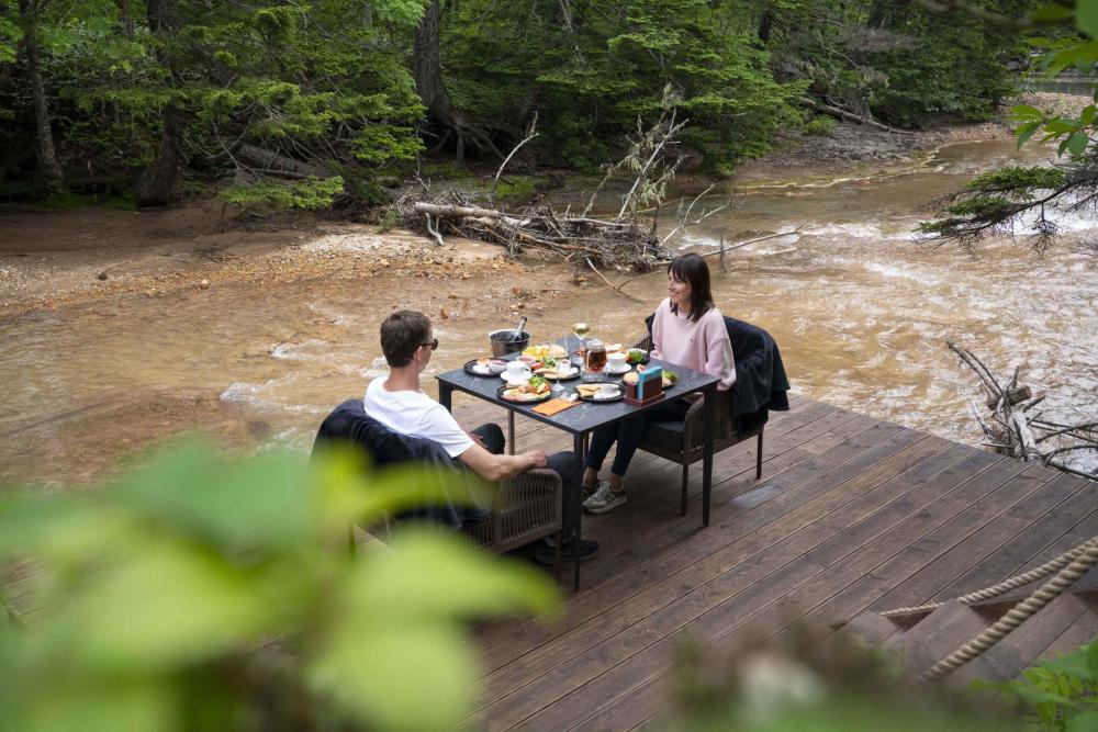 Дом на берегу реки с двумя террасами, в котором может комфортно расположиться компания до 3-х человек или семья с двумя детьми. В номере двуспальная кровать и раскладной диван.