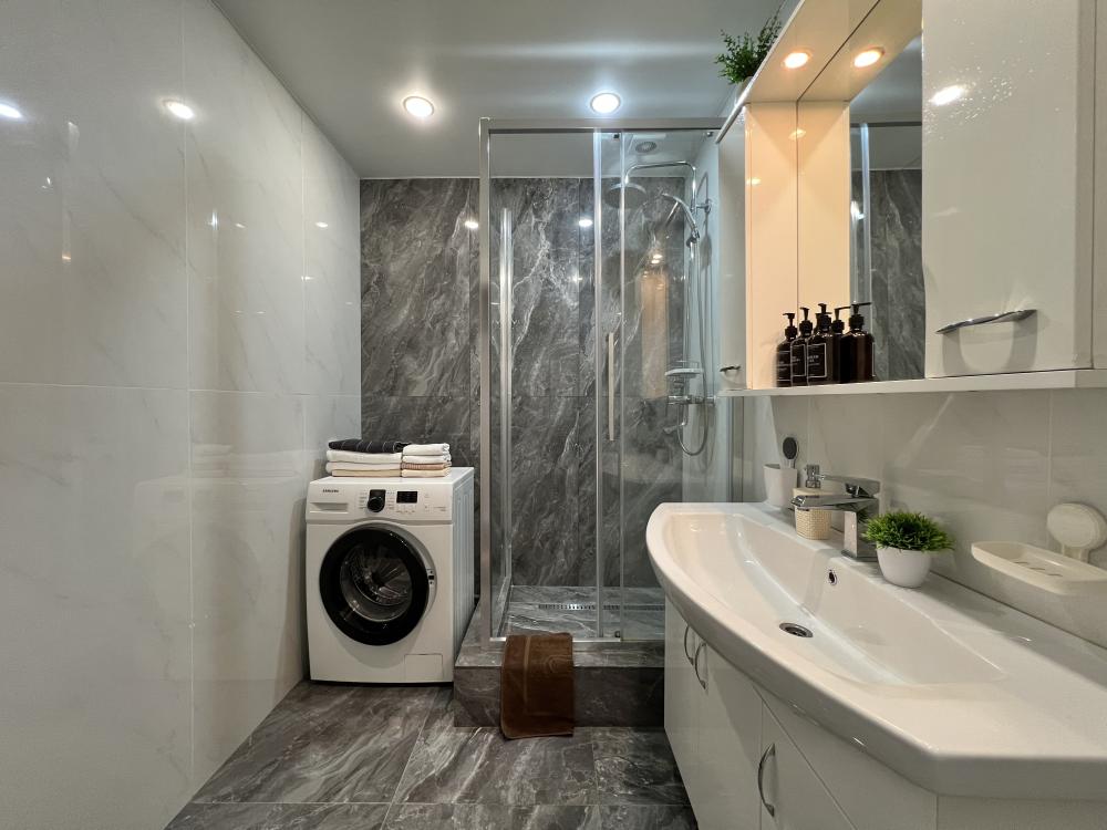 Апартаменты оборудованы всем необходимым для комфортного проживания: удобные спальные места, телевизор, wi-fi, утюг и гладильная доска, стиральная машина. Для самостоятельного приготовления еды имеется кухня, оснащенная холодильником, плитой, микроволновой печью, электрическим чайником и необходимым набором посуды. В ванной комнате есть душ, фен, комплект полотенец.
