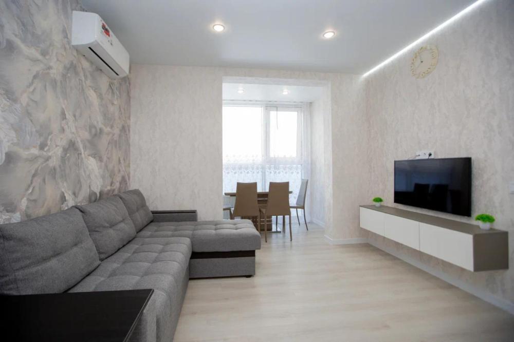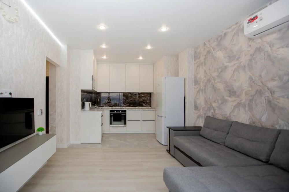 Уютные евродвухкомнатные апартаменты, оборудованные всем необходимым для комфортного проживания. В апартаментах: двуспальная кровать, диван, кухня с обеденной зоной, оборудованная необходимой техникой и посудой, санузел с душем.