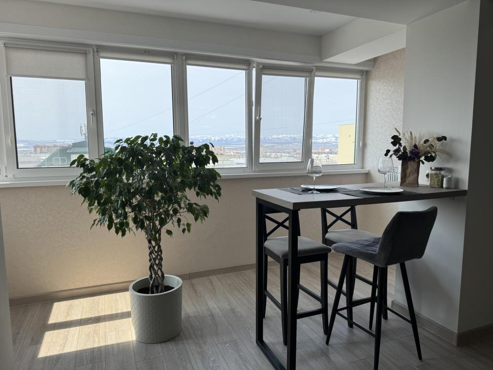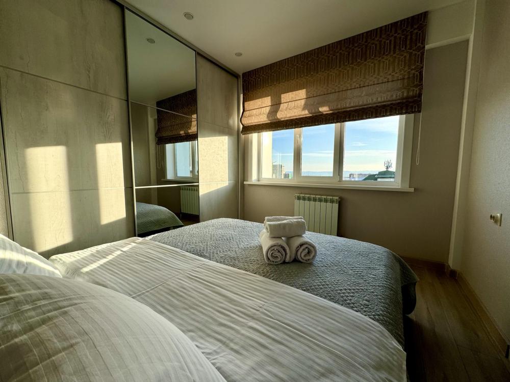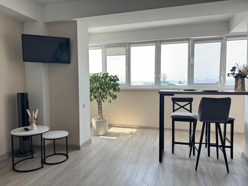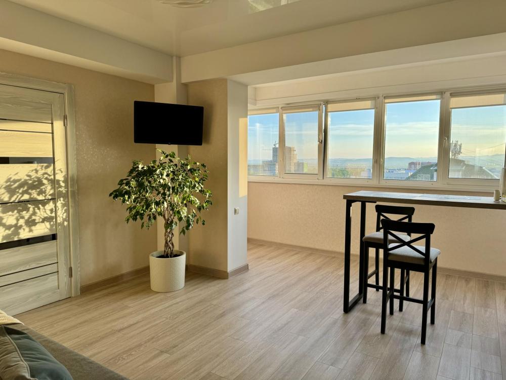 Светлая, теплая, уютная евро двушка. С потрясающим видом на закат, у нас на Сахалине они очень красивые. Я с заботой подготовила все самое необходимое для вашего комфортного проживания:современная техника: телевизор, утюг (гладильная доска),стиральная машина (порошок), фен, холодильник, микроволновая печь, чайник, эл плита, водонагреватель электрический На оборудованной кухне имеется полный комплект посуды, чай, кофе, сахар. Удобная двуспальная кровать + диван-кровать с чистым , свежим постельным бельем. Комплект полотенец для каждого гостя , зубная паста, шампунь, гель для душа. В 5 минутах езды до Горного Воздуха и до центра, 10-15 минут до аэропорта. Рядом супермаркет, аптека , кафе.