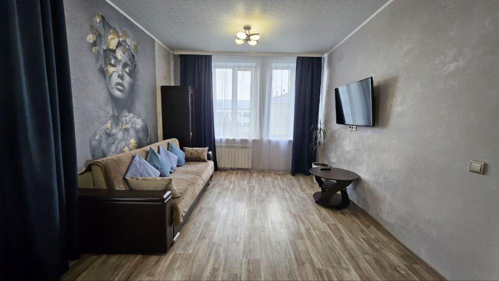 В квартире имеется двуспальная кровать, диван, угловой шкаф, кухонный гарнитур, обеденный стол, а также вся необходимая бытовая техника: микроволновая печь, электрическая плита с духовым шкафом, холодильник, стиральная машина, титан, телевизор, чайник и утюг. Бесплатный Wi-Fi и кабельное телевидение.