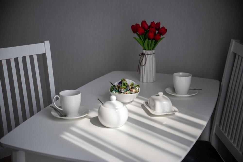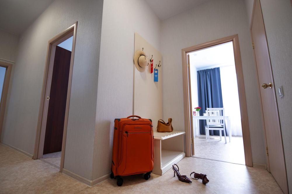 Удобные современные апартаменты, имеется все необходимое для комфортного проживания. Кухня с мини-баром, чайником и микроволновой печью. В комнате удобные односпальные кровати, стол, шкаф для хранения вещей, зеркало в прихожей, ванная комната со всем необходимым.