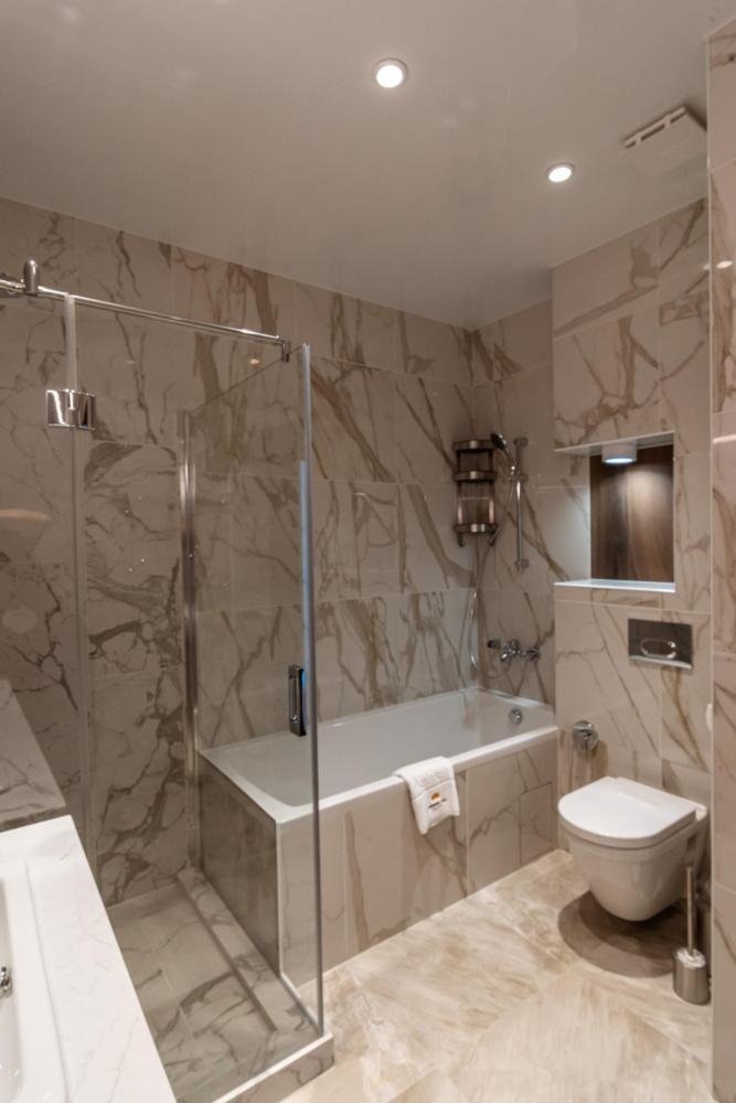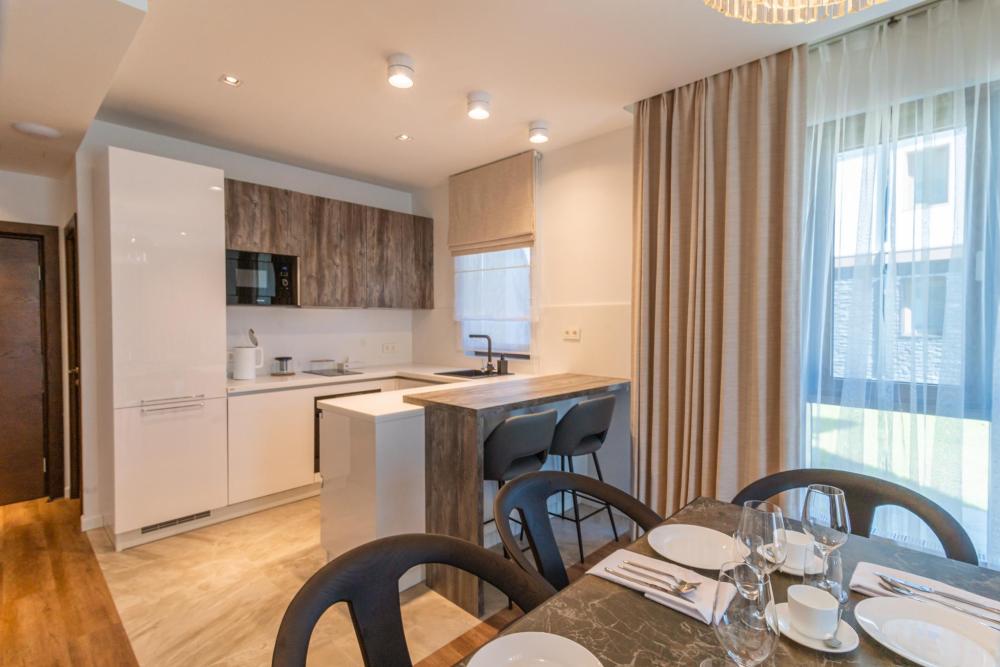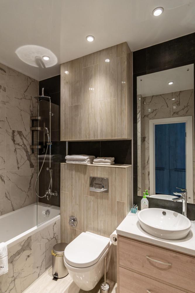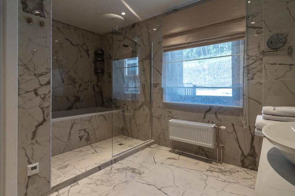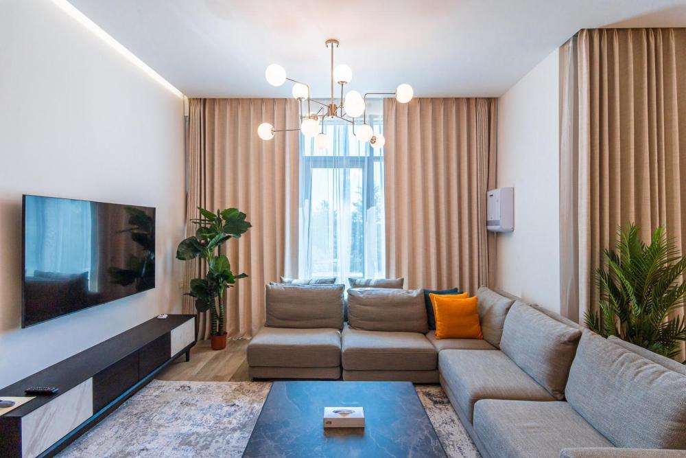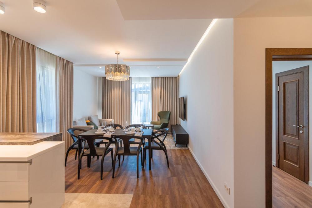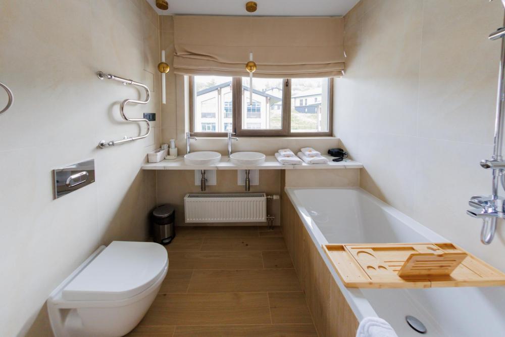 Комплектация апартаментов: климат-контроль, система очищения воздуха, три телевизора, холодильник с морозильной камерой, варочная панель, микроволновая печь, духовой шкаф, посудомоечная машина, машинка стиральная, машинка сушильная, душевая, ванна.