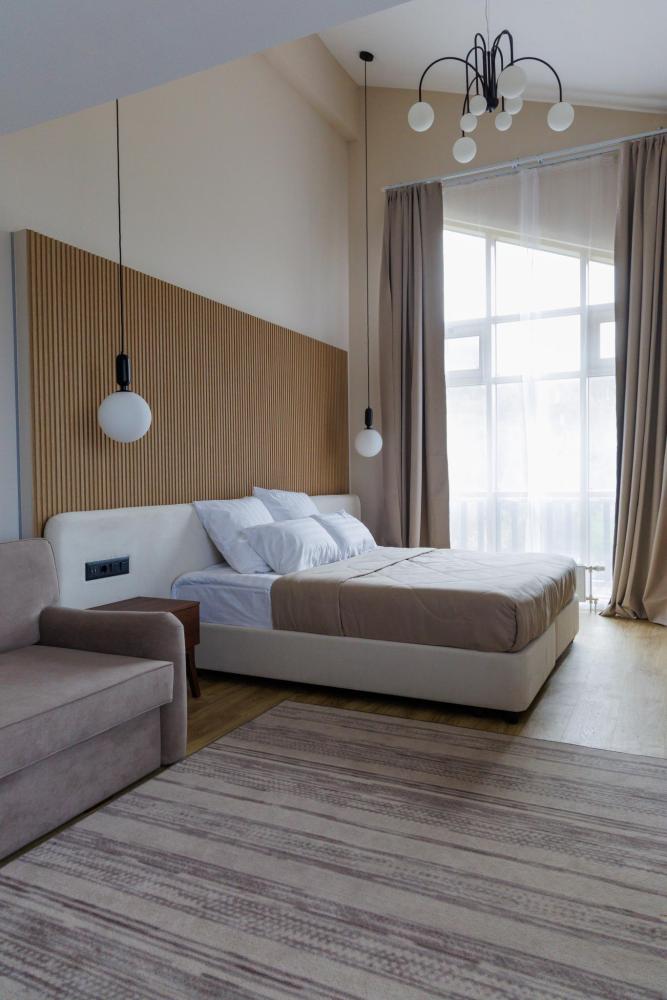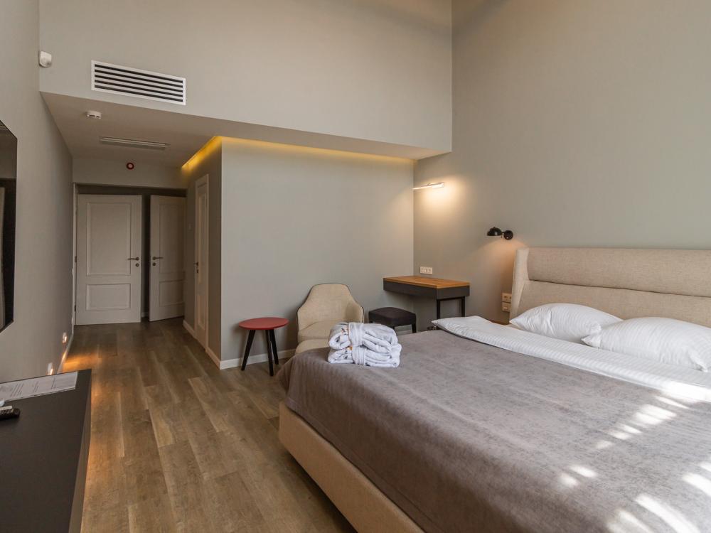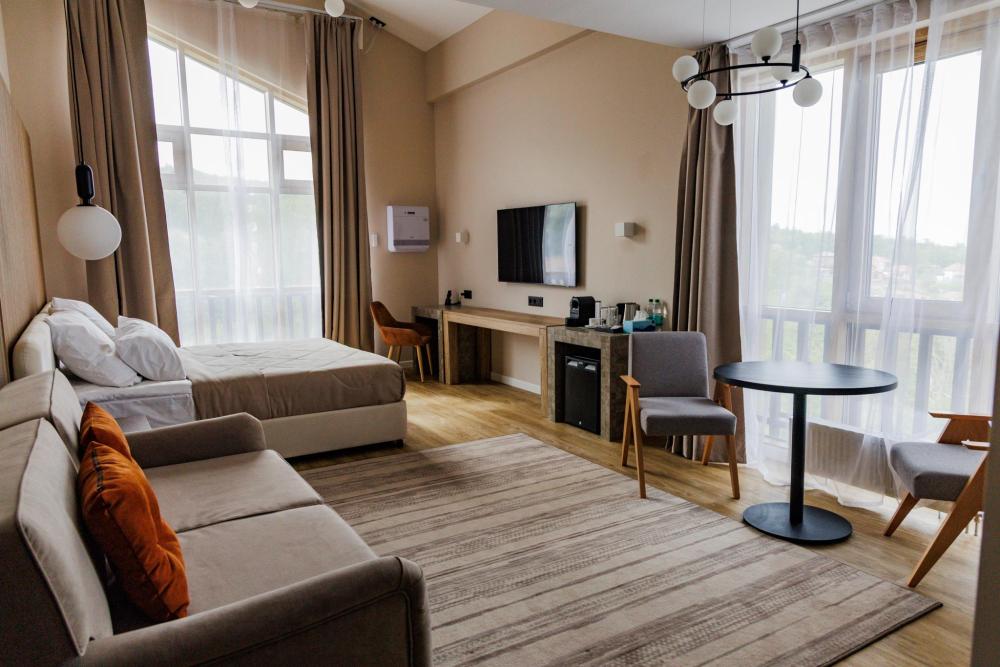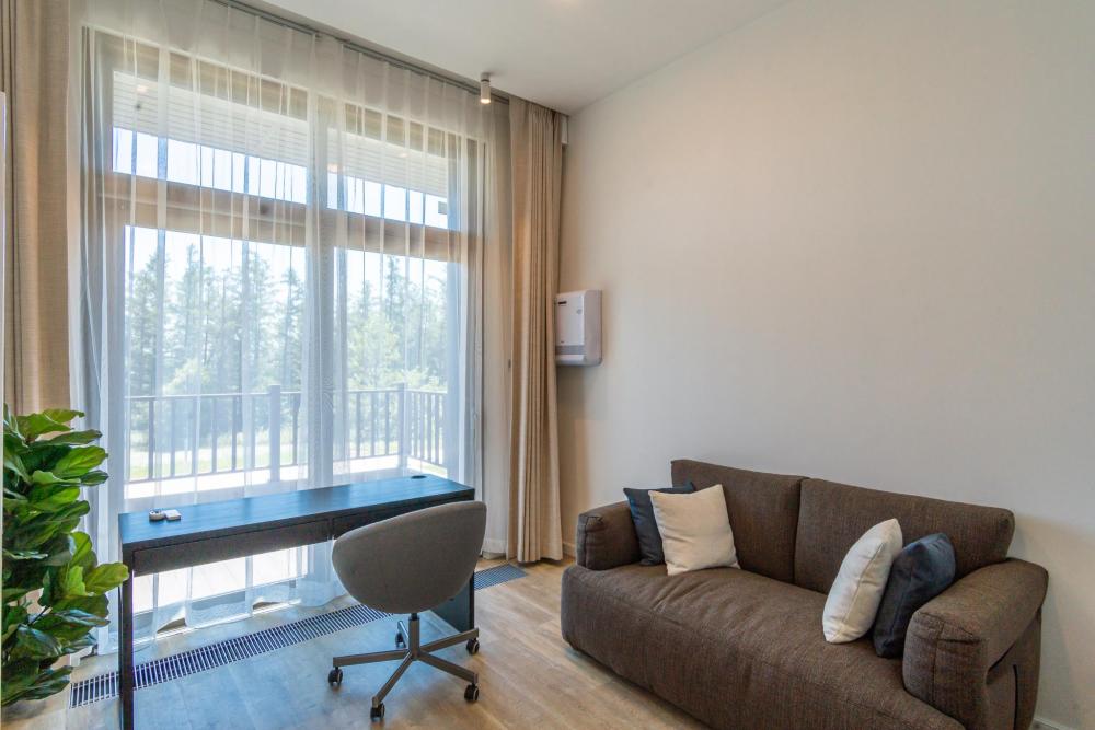 Просторный и светлый номер, в котором продумано всё — от стиля до уюта. Панорамные окна открывают виды на природу, а современный интерьер, трансформируемая кровать или кровать King Size, диван и рабочая зона делают номер идеальным как для отдыха, так и для продуктивной работы. В этом номере можно провести спокойный вечер у камина с чашкой кофе или сосредоточиться на деловых задачах, не теряя ощущения уюта и вдохновения. Подходит для пар, семей с детьми, соло-путешественников и деловых гостей. Идеально для: деловых гостей, путешествующих вдвоем или с детьми, коротких поездок.