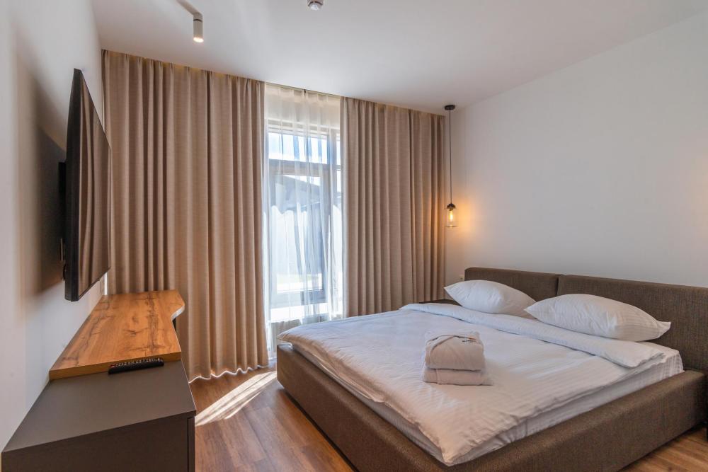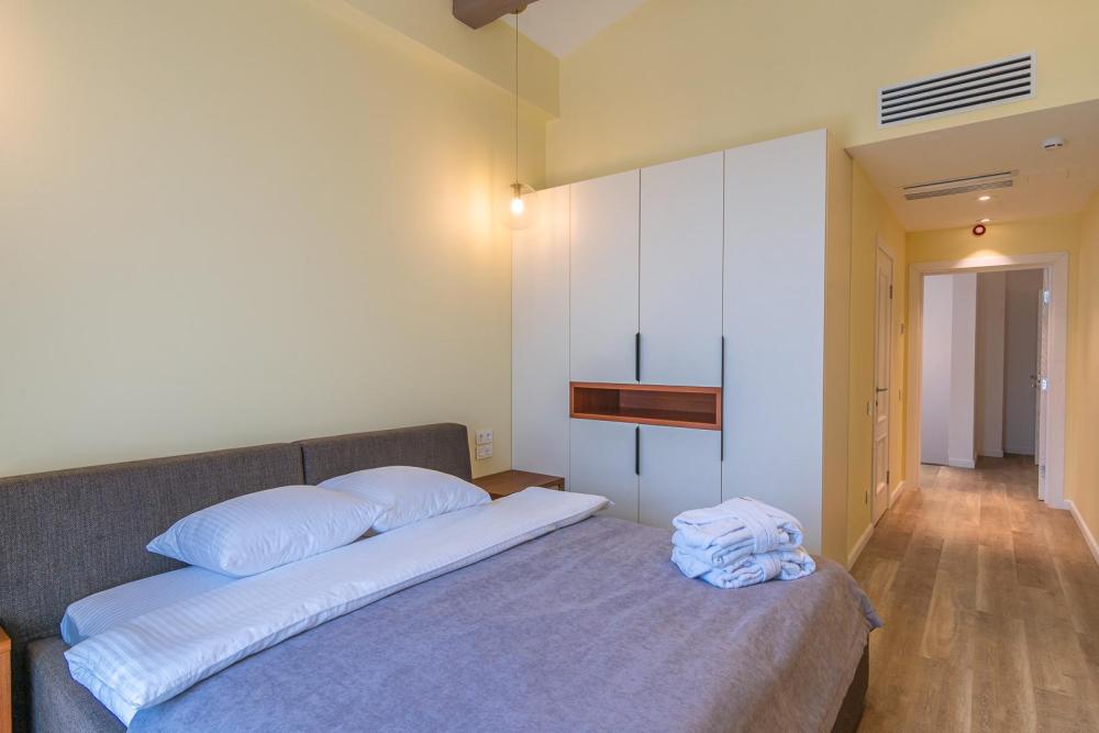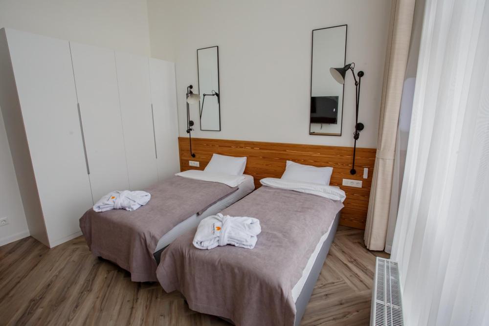 Двухкомнатный номер, вместимость – максимум 2 человека. Спальня (одна двуспальная кровать). Ванная комната с душевой. Комната для гардероба. Гостиная и кухня (плита с духовым шкафом, холодильник, микроволновка, посудомоечная машина, посуда и столовые приборы, чайник). Комната для прачечной. В стоимость проживания включено: косметические принадлежности, ежедневная уборка, Wi-Fi.