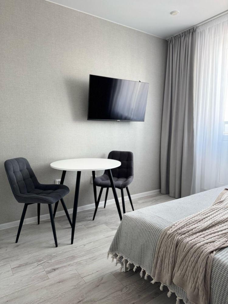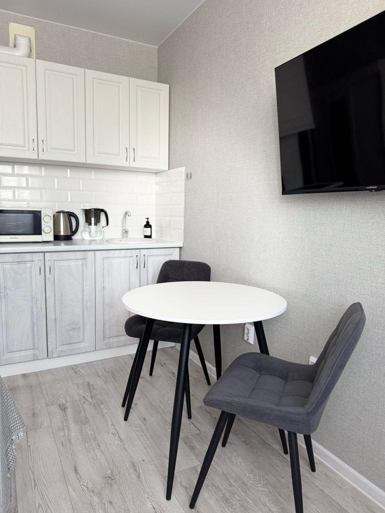 Уютная небольшая студия для двоих в «Радужных дворах» города Спутник. Расположена на 9/14 этаже. Для вас мы подготовили большую двуспальную кровать (160см) с удобным ортопедическим матрасом, для отличного сна. Также белое постельное белье и полотенца (как в отеле!). На кухне Вы найдете все необходимое для приготовления пищи и сервировки стола, а также базовый набор продуктов, чтобы утолить голод с дороги. Также есть фильтр для воды, поэтому вам не нужно покупать питьевую воду! В ванной Вас ждет набор косметики для душа, а также средства гигиены и фен. Также Вам будет доступен бесплатный WiFi и Смарт ТВ с подключенным «Кинопоиском». На балконе с панорамным окнами расположена зона отдыха, где вы можете насладиться чашечкой кофе и прекрасным видом на закрытый двор. Также из окон видно взлеты и приземление самолетов. С нетерпением ждем Вас у себя в гостях и желаем незабываемого отдыха!? Квартира расположена в микрорайоне СПУТНИК «Радужные дворы» (5 минут до фонтана пешком), до аэропорта - 7 минут на машине, до центра города - 15 минут. У дома расположена остановка общественного транспорта. В шаговой доступности все сетевые продуктовые магазины. Дом находится в закрытом дворе без машин, с большой детской площадкой и зонами отдыха (окна выходят во двор). Парковка возле подъезда бесплатная, также возле дома есть платная. При бронировании обязательна предоплата на сервисе Avito, без исключений! Максимальная вместимость: 2 гостя (двуспальная кровать (160*200)). Возможно с детьми без предоставления доп.места. ❗Заезд после 14-00, выезд до 12-00 (исключения согласовываются индивидуально) Правила проживания: ❌️ Курение, в том числе, кальяна и электронных сигарет запрещено ❌️ Апартаменты не предоставляются гостям младше 18 ❌️ В апартаментах запрещается проводить шумные вечеринки ❌️ Запрещено проживание с домашними животными