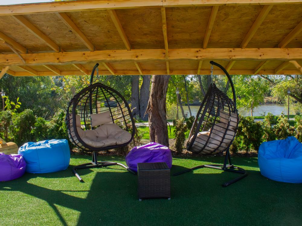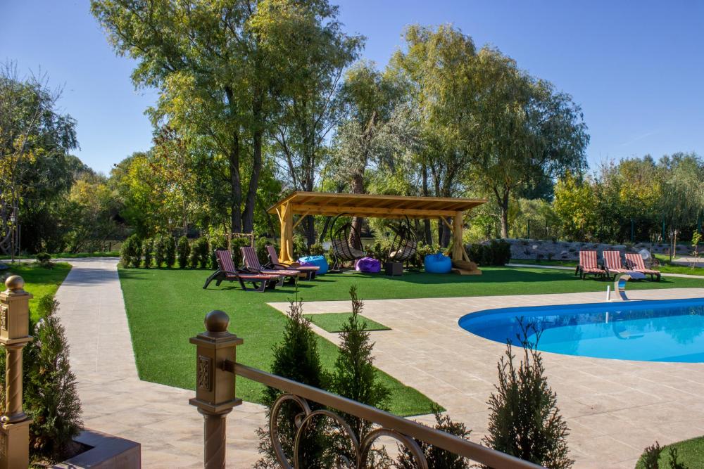 Дом VIP, дом для размещения 8-10 человек включая сауну и бассейн и беседку. В доме три двуспальные кровати и две раздельные кровати.