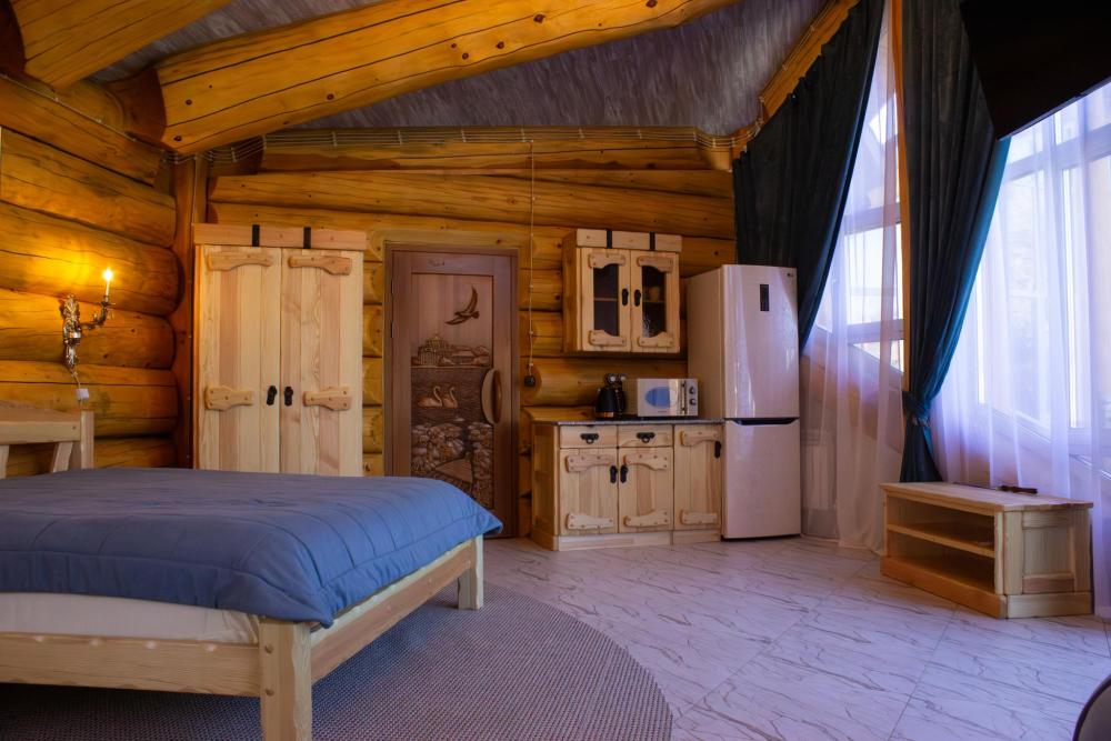 ВИП дом малый, дом для 4-6 человек. В доме две двуспальные кровати.