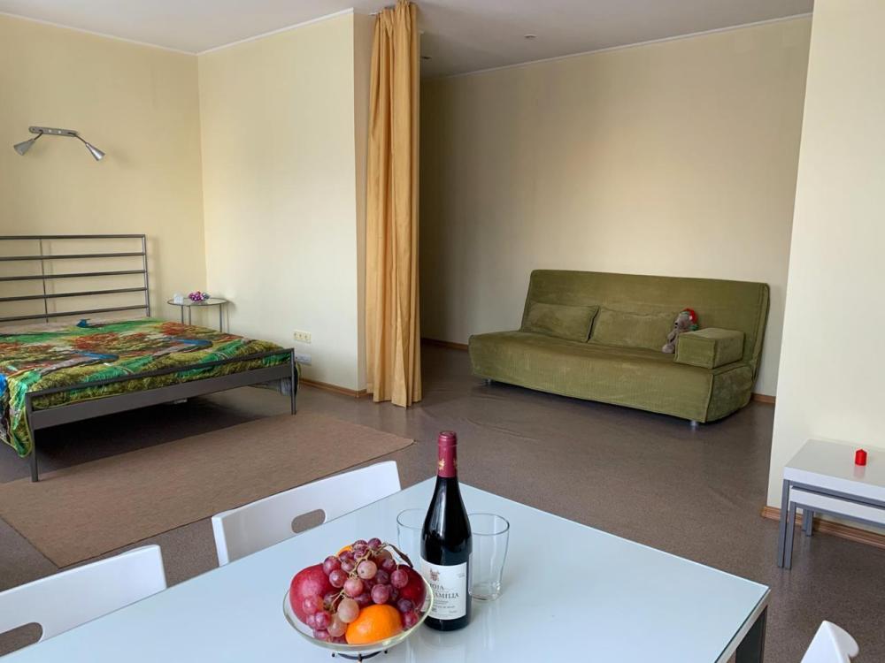 Планировка: кухня - гостиная с двуспальной кроватью и с двуспальным диваном с ортопедическим основанием, сан узел с душевой кабиной, коридор