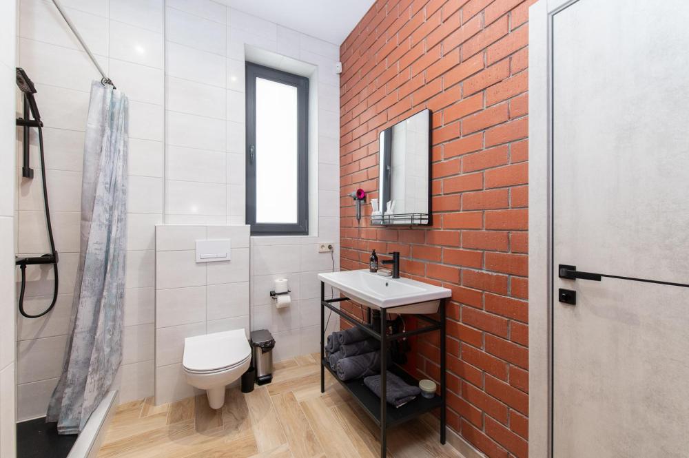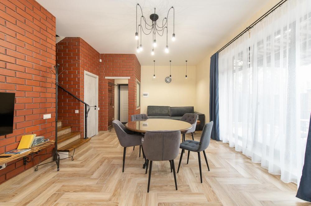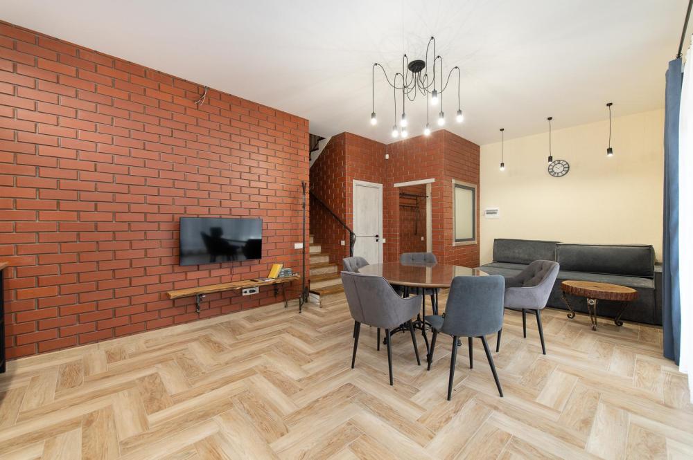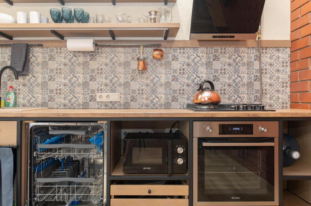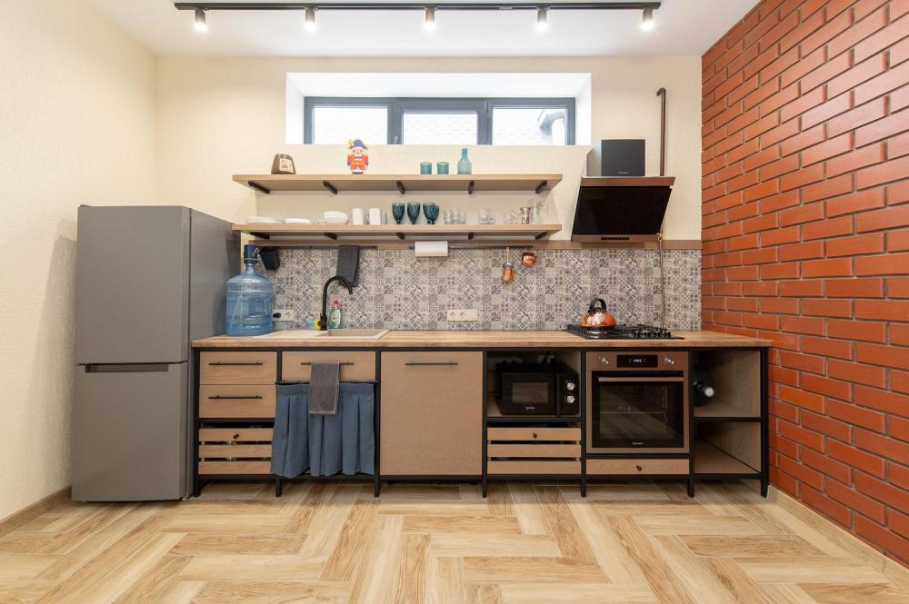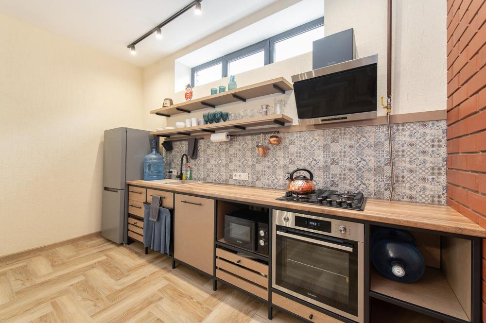 • Полноценная кухня, газовая плита, духовка, СВЧ, посудомоечная машина, двухкамерный холодильник, стиральная машина, Smart TV, Wi-Fi, утюг, фен, пылесос.