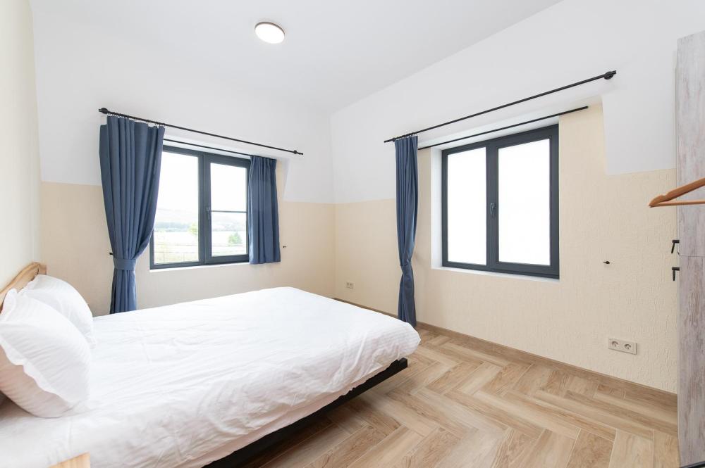 Для размещения гостям предлагаются уютные современные коттеджи и апартаменты, различной вместимости и оснащения. Для комфортного проживания гостей апартаменты оснащены всем необходимым: полноценная кухня, газовая плита, духовка, СВЧ, посудомоечная машина, двухкамерный холодильник, стиральная машина, Smart TV, Wi-Fi, утюг, фен, пылесос, мебель индивидуального изготовления из массива дуба, ильмы, гевеи, премиальные ортопедические матрасы, постельное бельё.