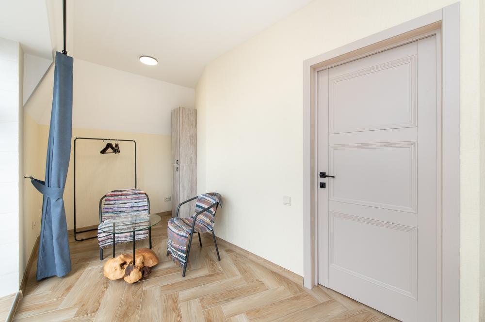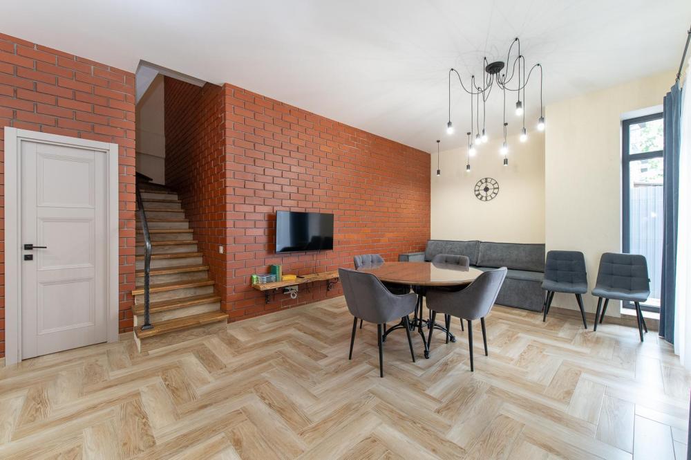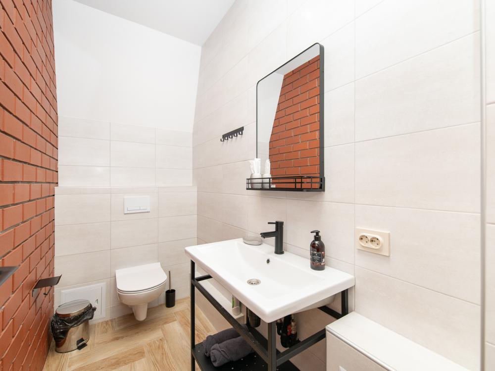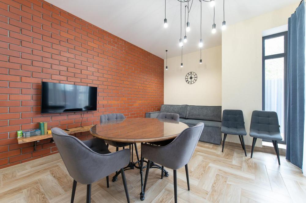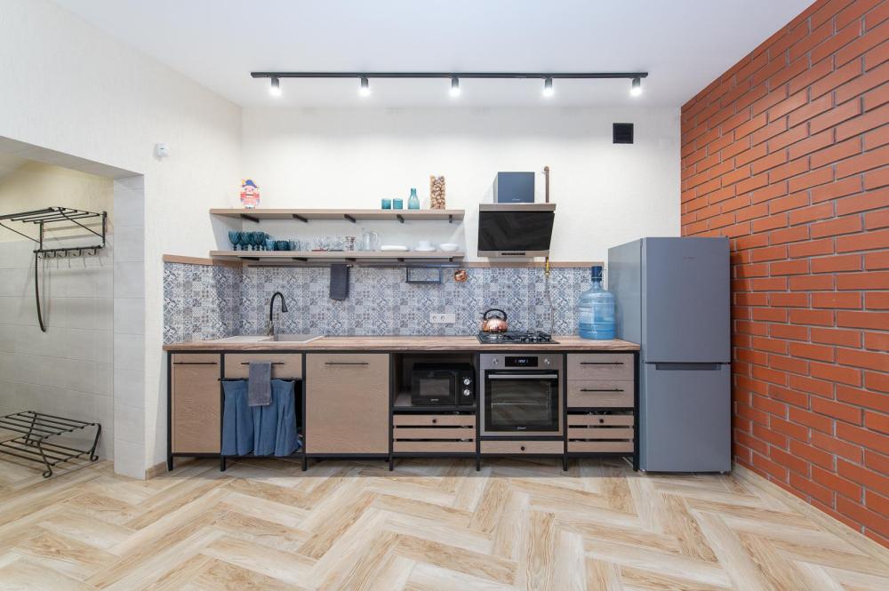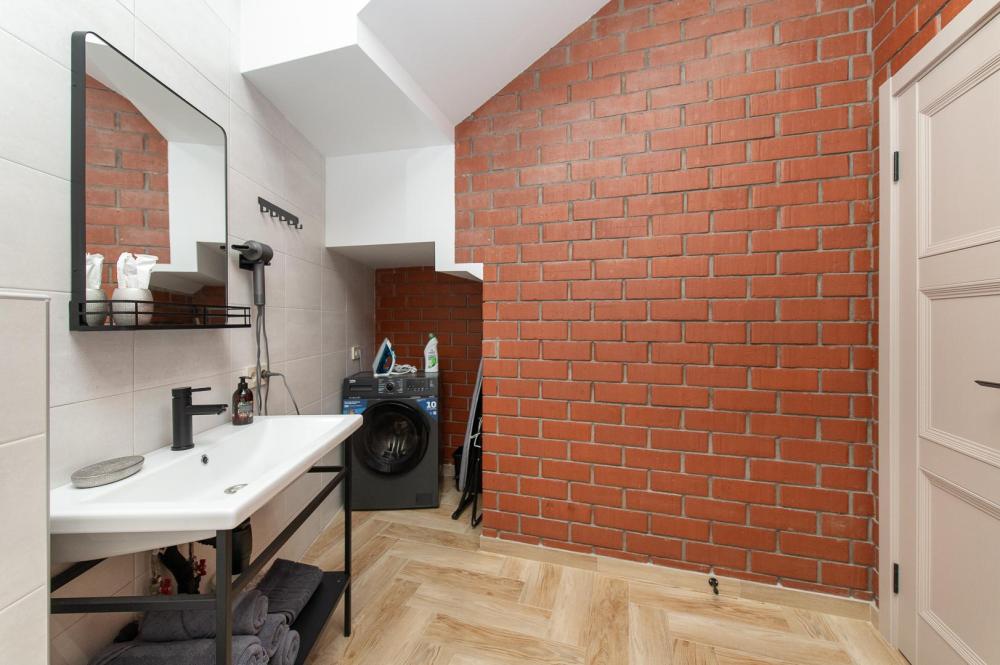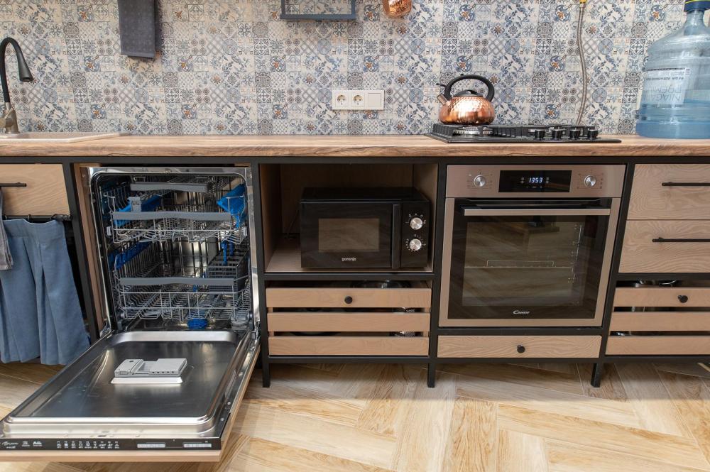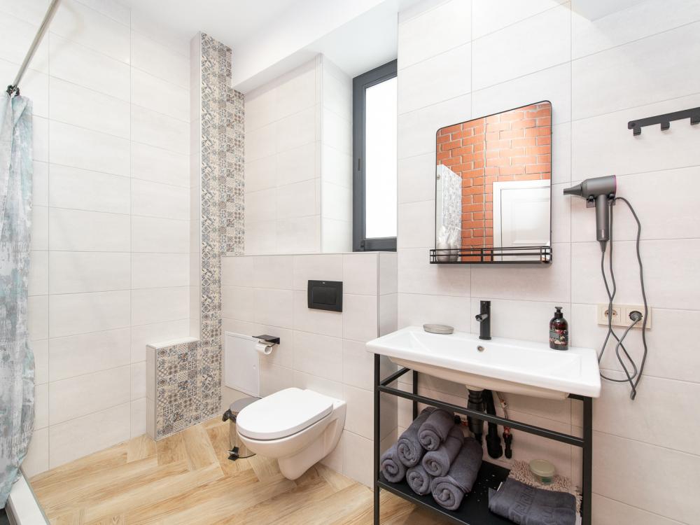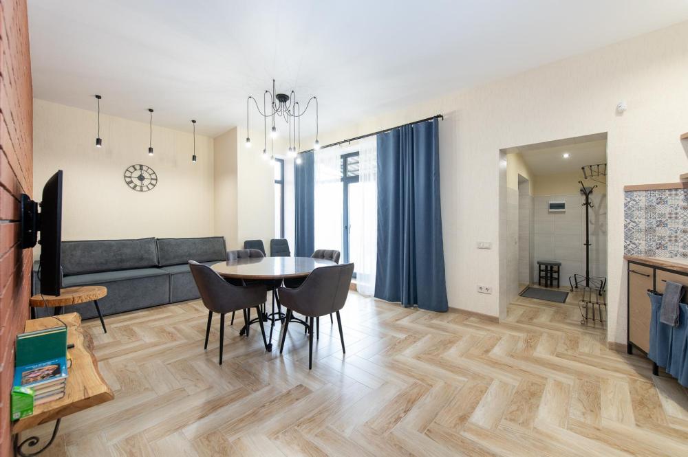 • Полноценная кухня, газовая плита, духовка, СВЧ, посудомоечная машина, двухкамерный холодильник, стиральная машина, Smart TV, Wi-Fi, утюг, фен, пылесос.