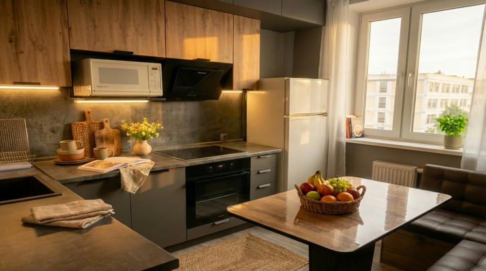Стильная квартира посуточно у станции Крюково Зеленоград Для командировок и отдыха Эта уютная 1-комнатная квартира на 4-м этаже создана для тех, кто ценит комфорт, тишину и отличную транспортную доступность. Почему выбирают нас: · Идеальная локация: Корпус 1820. Всего 5 минут неспешным шагом до станции Крюково. Вы в центре событий, но засыпаете в тишине. Приезжайте на поезде — и легко доберётесь до квартиры без долгих пересадок. · Для командировочных: Быстрый Wi-Fi, удобный рабочий стол и спокойная обстановка для концентрации. После плодотворного дня — расслабьтесь на удобном диване перед телевизором. · Для влюблённых: Романтическая атмосфера и уединение для пар. Приготовьте ужин на полностью оборудованной кухне и устройте киновечер. Ваш идеальный побег от городской суеты. · Комфорт без хлопот: Всё уже включено в стоимость: свежее постельное белье, пушистые полотенца, вся необходимая техника и посуда. Вам остаётся только заселиться и наслаждаться. Что ждёт внутри: · Чистая и светлая комната с новым ремонтом · Удобная кровать/диван с ортопедическим матрасом · 4-й этаж (невысоко, подниматься легко) · Полностью оборудованная кухня (плита, холодильник, чайник, микроволновка, вся посуда) · Современный телевизор с Smart TV · Высокоскоростной Wi-Fi · Чистый санузел с душевой кабиной и горячей водой 24/7 Важно: Жилье не для шумных вечеринок. Идеально для спокойного отдыха 1-2 гостей. Забронируйте ваши даты уже сегодня! Напишите или позвоните, чтобы узнать о свободных днях и получить точный адрес. Встречаем гостей с 15:00, выезд до 12:00.