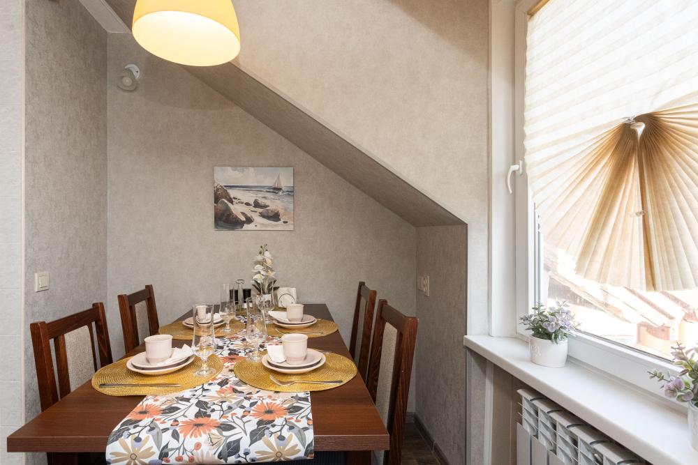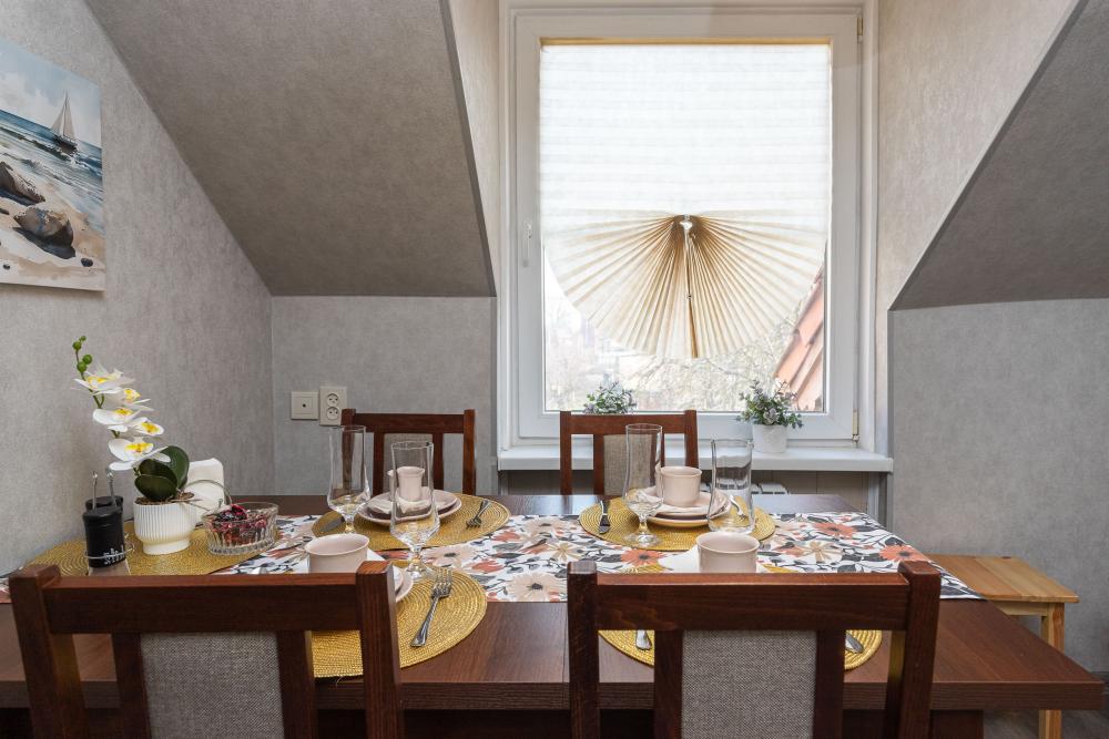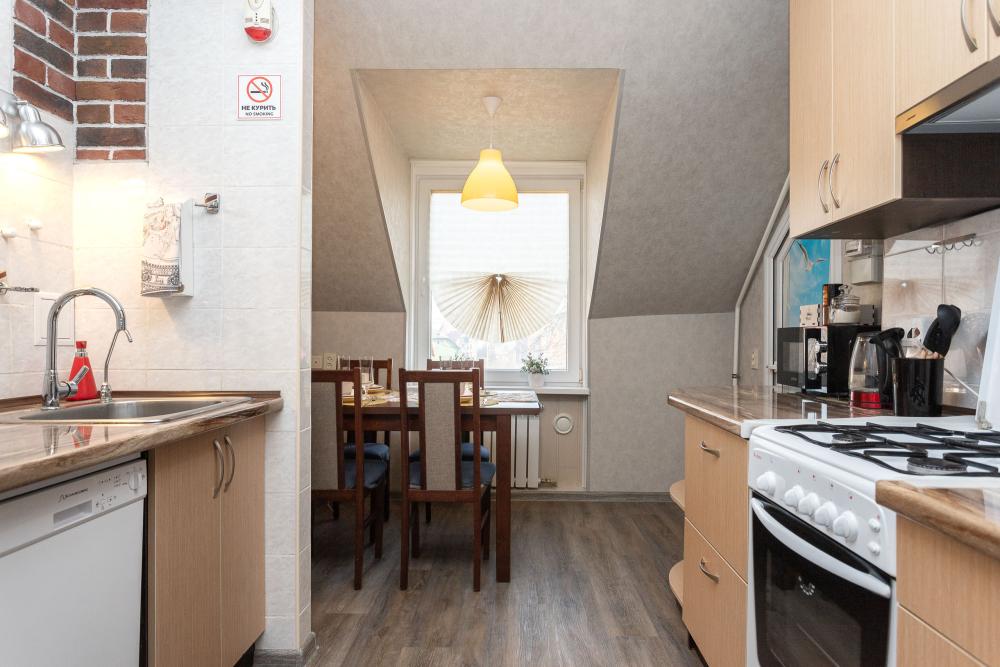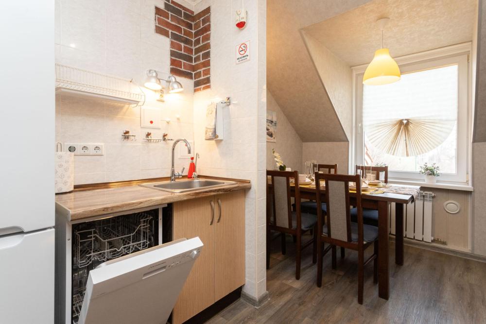 Мансарда на Лютерштрассе в центре Зеленоградска и 5 минутах от моря! Бесконтактное круглосуточное заселение. Бесплатная парковка. МЕСТОРАСПОЛОЖЕНИЕ АПАРТАМЕНТОВ: 4-х комнатные апартаменты на мансардном этаже со свежим ремонтом и автономным отоплением в самом центре Зеленоградска. В пешей доступности (5-ть минут ходьбы) расположены: - море, пляж, променад с барами и ресторанами; - знаменитая пешеходная улица Курортный проспект (местный Арбат) с магазинчиками и ресторанами; - городской парк; - крупные супермаркеты "Спар" и "Виктория". Мансарда расположена в доме постройки первой половины XX века, со своей аутентичной атмосферой, в тихом историческом центре города, в старинном немецком квартале. Все комнаты в апартаментах изолированные. В каждой комнате телевизор смарт. Два санузла. Предусмотрено все для комфортного проживания от бытовой техники до средств личной гигиены. Для взрослых и маленьких гостей есть настольные игры и книги. ГИД-ЛИСТ (ГАЙД): Нашим гостям бесплатно предоставляется гид-лист с интересными местами и зарекомендованными ресторанами и кафе Зеленоградска и Калининграда. Отправляем в мессенджер WhatsApp/Telegram после бронирования.
