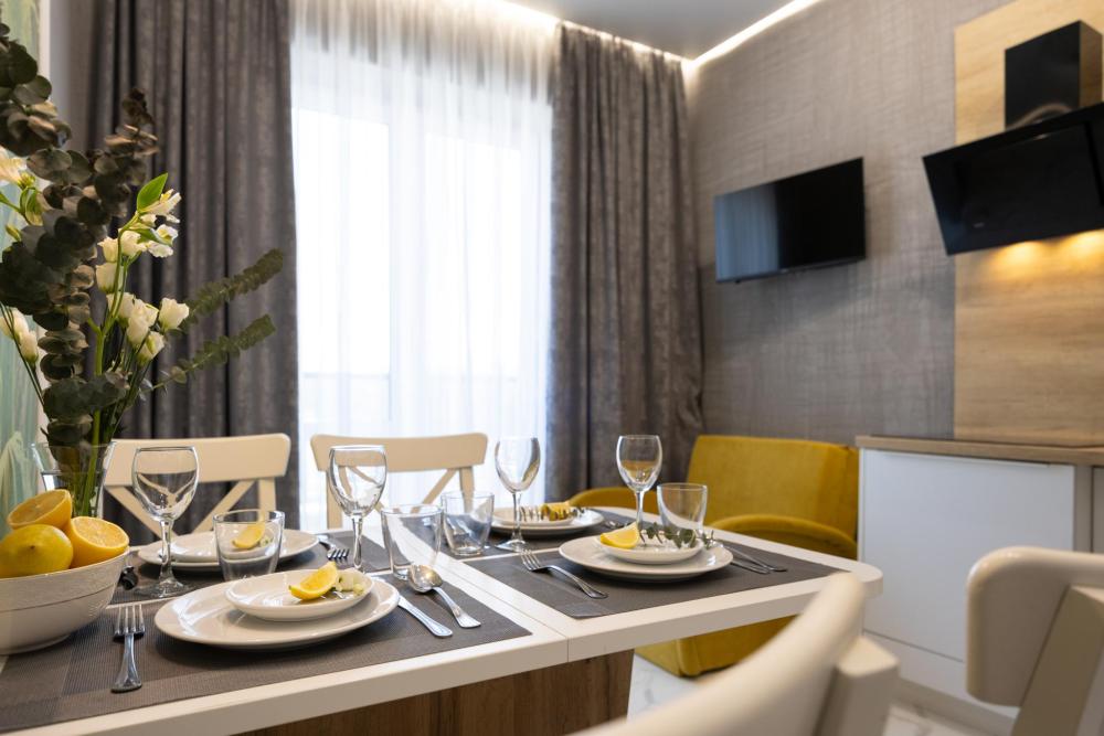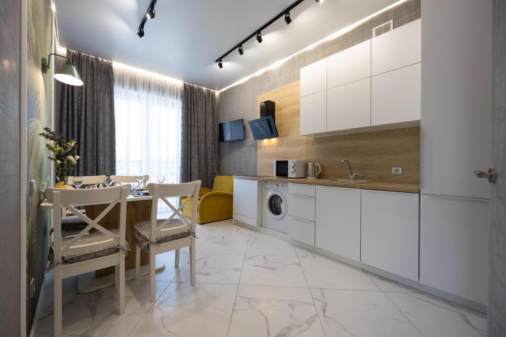 Добро пожаловать в Новые дизайнерские Апартаменты с видом на море, расположенные на самом берегу Балтийского моря в элитном ЖК "Резиденции у моря". До моря, пляжа, променада всего 2 минуты пешком ! ВНИМАНИЕ ! Уборка и прачка после проживания оплачивается отдельно! не входит в стоимость проживания 3000 рублей В апартаментах возможно комфортное размещение до 5 человек. Кухня со всем необходимым для готовки. Просторная ванная комната, белоснежные полотенца для каждого гостя. В 1 минуте от дома находится пляж Западный - самый чистый и широкий в Зеленоградске, самый обустроенный - с лежаками, беседками, шезлонгами, зонтиками, бассейнами, ресторанами и спасательными постами. Вход в бассейны оплачивается отдельно. Променад находится в 50 м от дома , по которому прогулочным шагом можно дойти до центра Зеленоградска за 15 минут. В пешей доступности магазины, кафе.