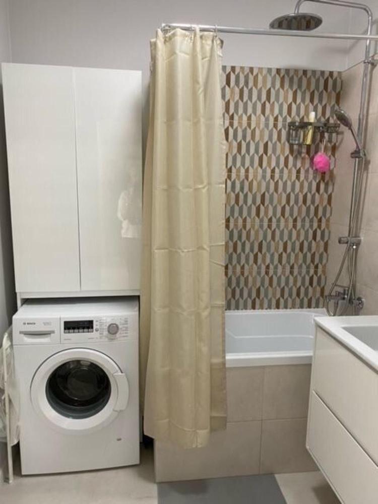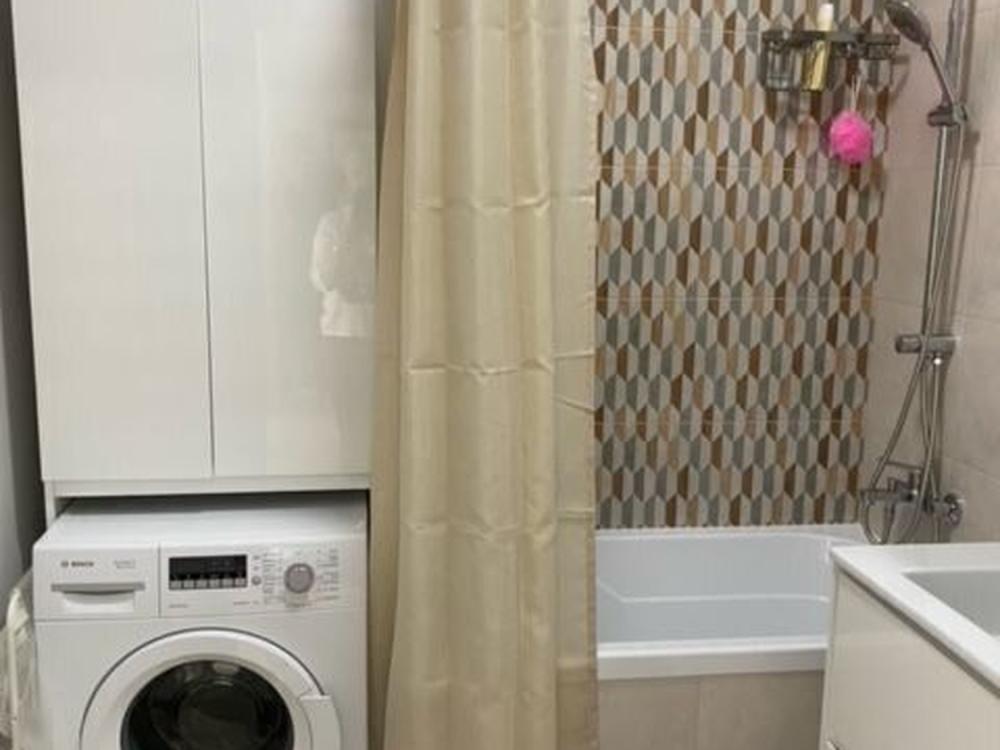 Ванная: стиральная машина, фен, комплект полотенец, постельные принадлежности, утюг, гладильная доска.