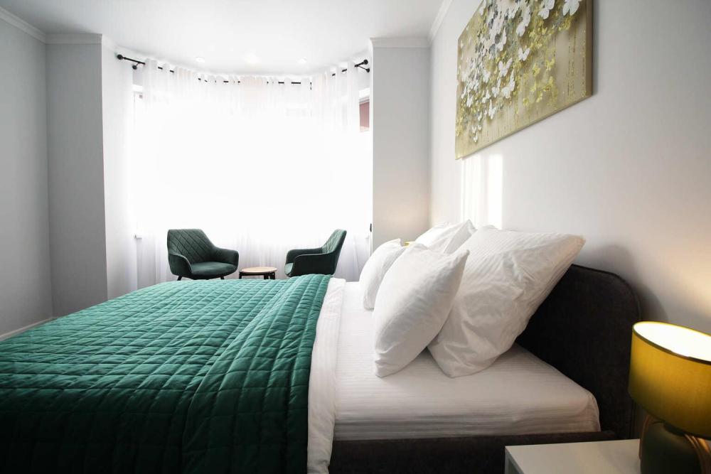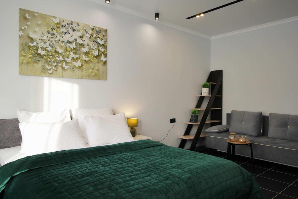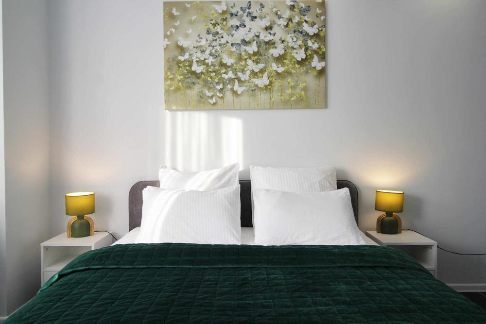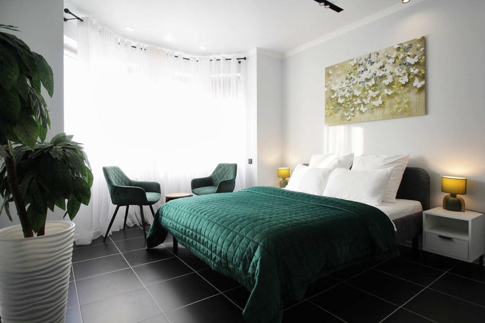 Апартаменты Малахит рядом с живописным парком и озером, в 5 минутах ходьбы до пляжа. Для комфортного проживания до 4х гостей. Расположение: Самый центр. Рядом городской парк, озеро «Тортилин пруд», ТЦ и магазины, кафе и рестораны, места для прогулок и отдыха. До вокзала 15 минут пешком, откуда можно отправиться на Куршскую косу и в другие направления. Комплектация апартаментов: Smart TV. Wi-Fi. Спальня: комфортная двуспальная кровать 160см на 200см с новым матрасом, постельное белье, раскладной двуспальный диван 140см на 200см, ТВ, утюг и гладильная доска, электрический камин; Санузел: ванная, стиральная машина, полотенца, фен, туалетные принадлежности (мыло, гель для душа, шампунь и т.д.); Кухня: холодильник, газовая варочная панель, микроволновая печь, эл. чайник, тостер, кофемашина, ТВ, посуда (бокалы, чашки, столовые приборы, сковорода, кастрюля и т.п.), чай/кофе. Выход на лоджию.