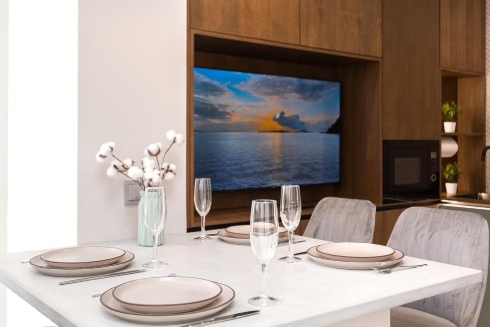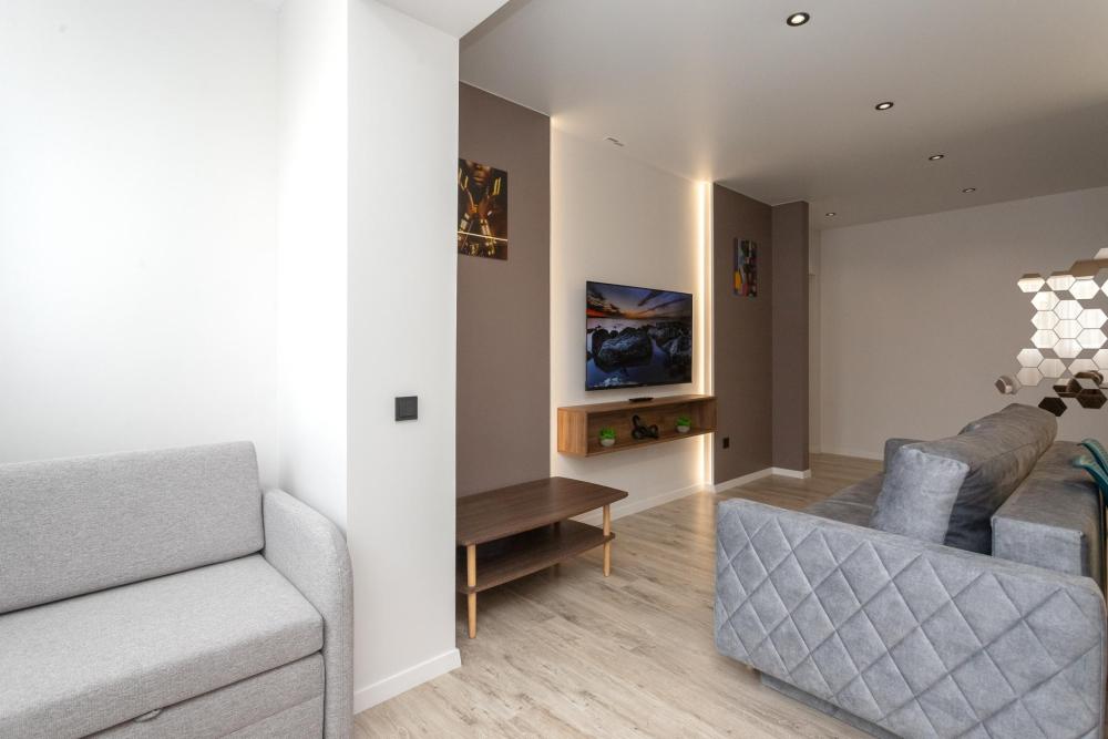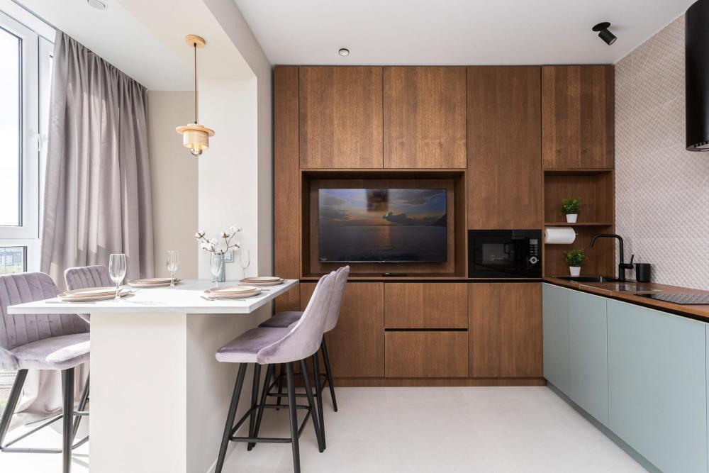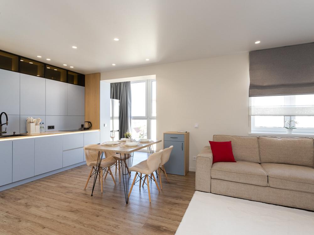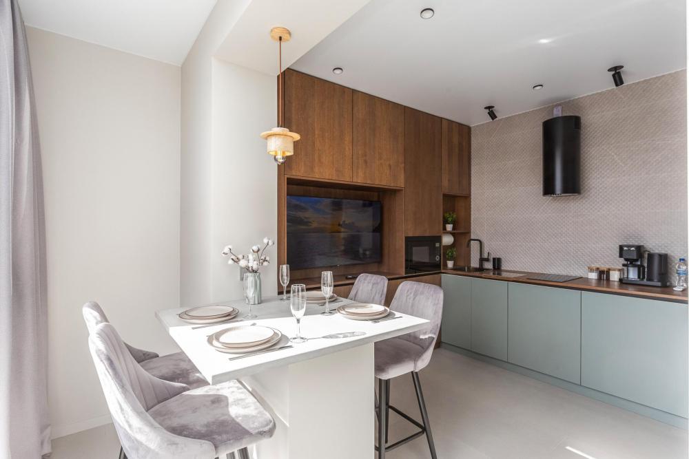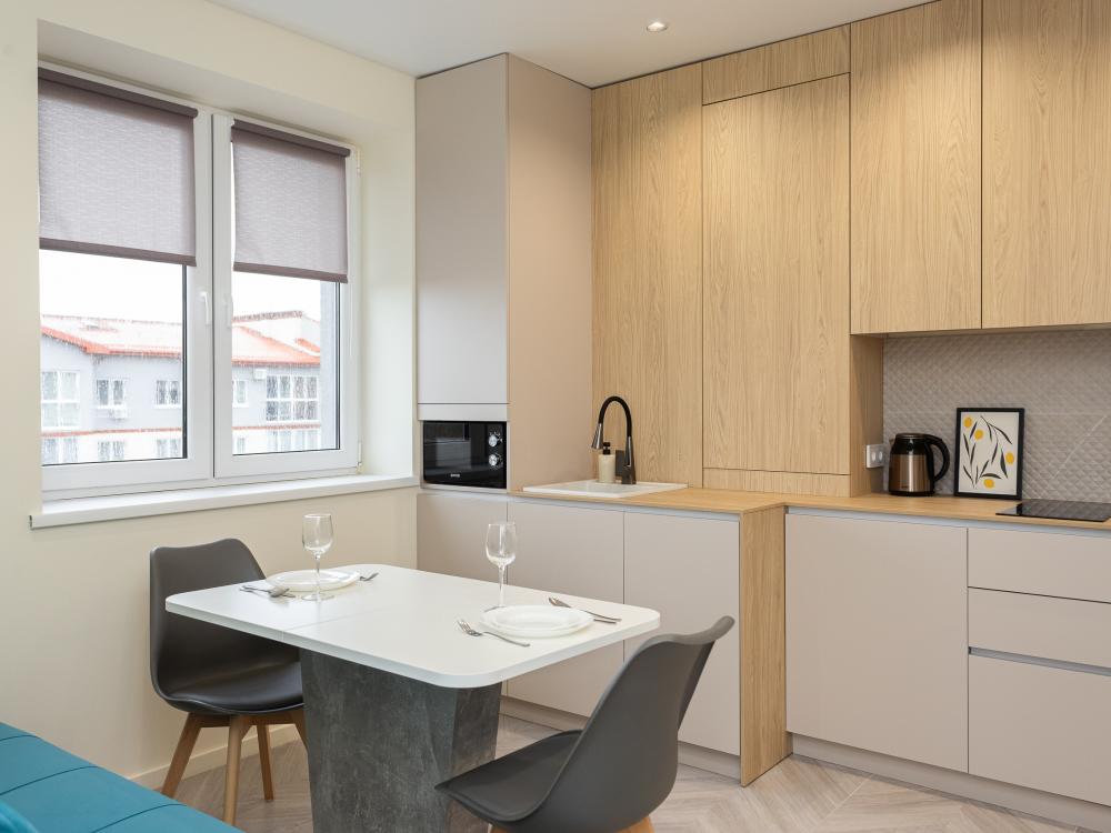Апартаменты с современным ремонтом недалеко от Западного пляжа г. Зеленоградск. Рядом бассейн и детские развлечения. Расстояния: до пляжа 7 минут. От аэропорта до апартаментов на машине 20 минут. До центра города Зеленоградск 20 минут пешком. До Калининграда 30 минут на машине. В апартаментах есть все необходимое для комфортного проживания наших гостей: постельное белье и полотенца, гигиеническое принадлежности, одноразовые тапочки, чай, сахар, кофе. Все необходимые кухонные принадлежности, посудомоечная машина, стиральная машина, 2 телевизора Smart с красивой подсветкой, детская кроватка-манеж с матрасом и бельем Спальные места: Двуспальная кровать размер 160/200 с одеялом 200/200. Диван-кровать с широкими спальными местами и одеялом 200/200.