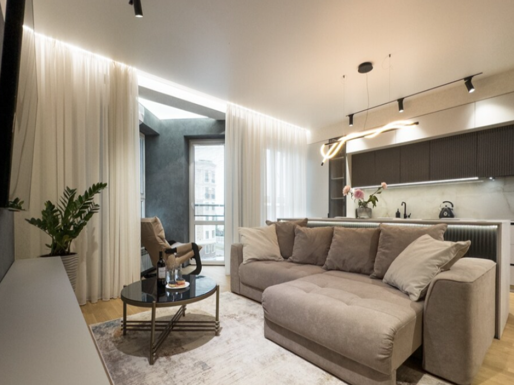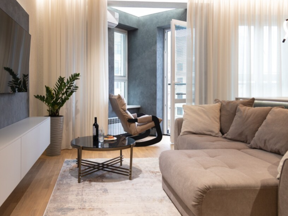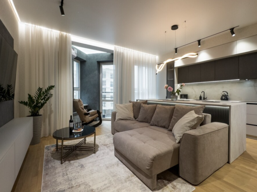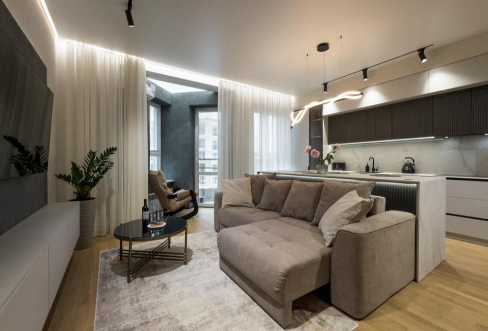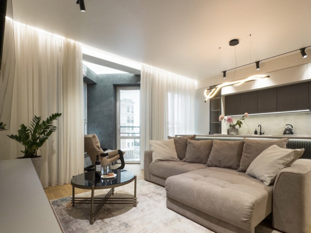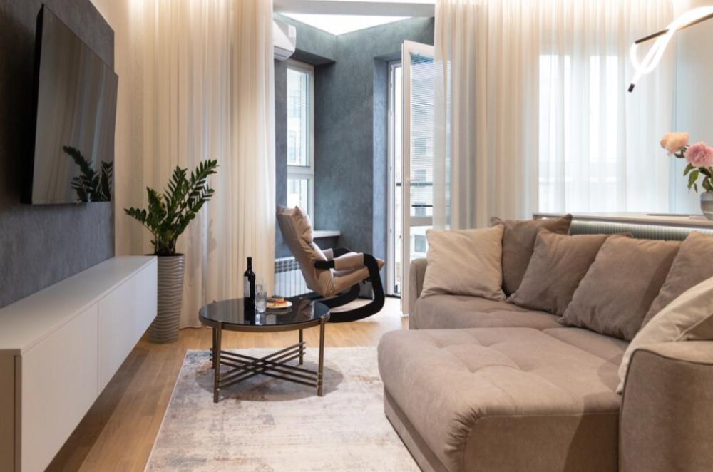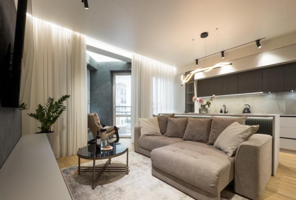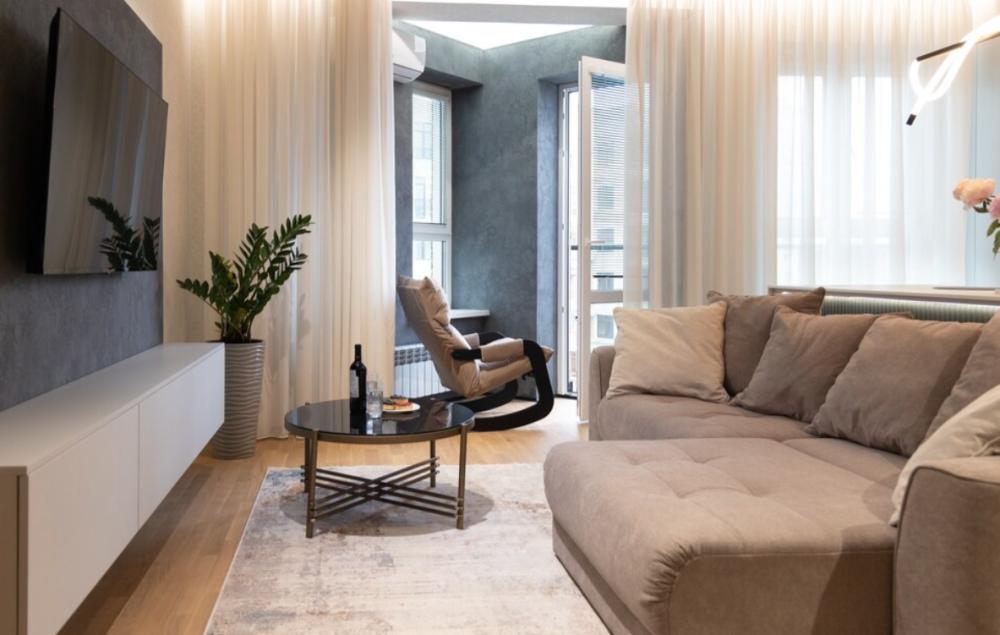 В апартаментах возможно комфортное размещение до 5 человек; 2-спальная кровать + 2-спальный раскладной диван + 1,5-спальный раскладной диван. Кухня со всем необходимым для готовки. Просторная ванная комната, белоснежные полотенца и личный гигиенический набор для каждого гостя. Просторная душевая. Фен. Финальная уборка и прачка после проживания оплачивается отдельно - 3000 рублей.