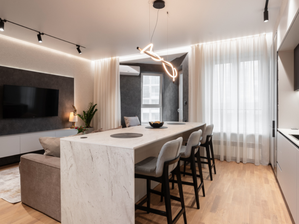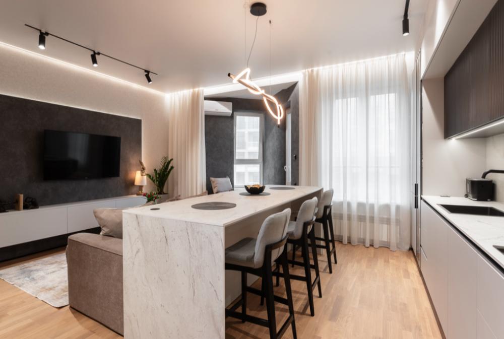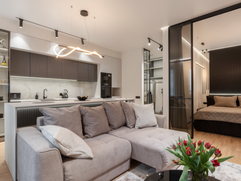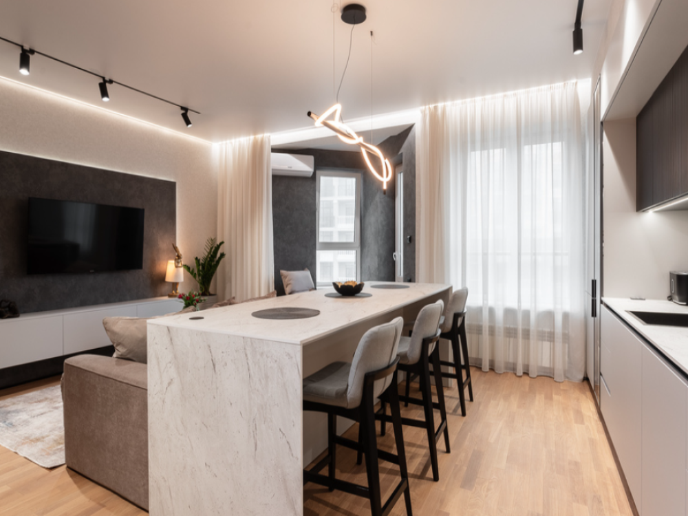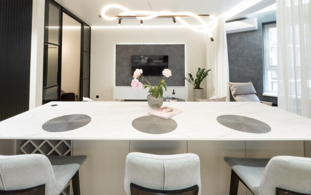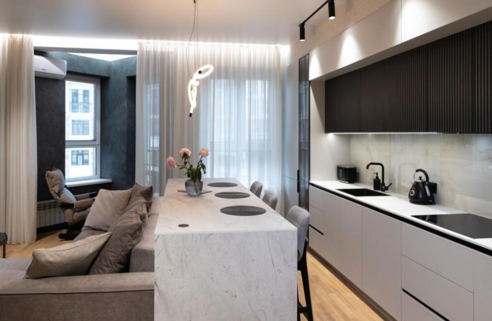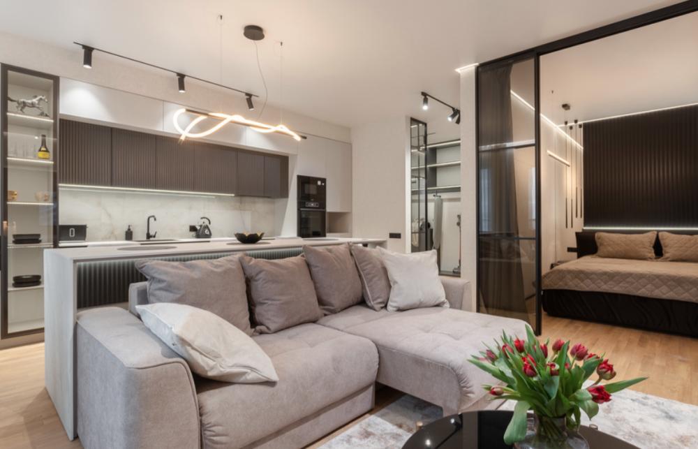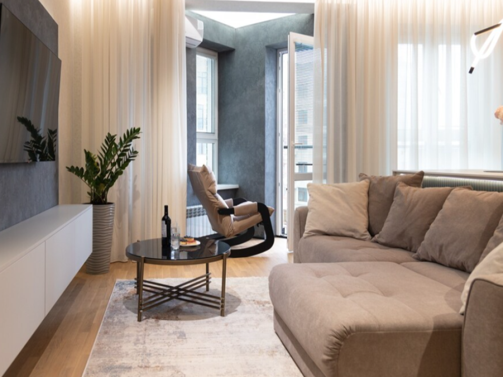 В апартаментах возможно комфортное размещение до 5 человек; 2-спальная кровать + 2-спальный раскладной диван + 1,5-спальный раскладной диван. Кухня со всем необходимым для готовки. Просторная ванная комната, белоснежные полотенца и личный гигиенический набор для каждого гостя. Просторная душевая. Фен. Финальная уборка и прачка после проживания оплачивается отдельно - 3000 рублей.