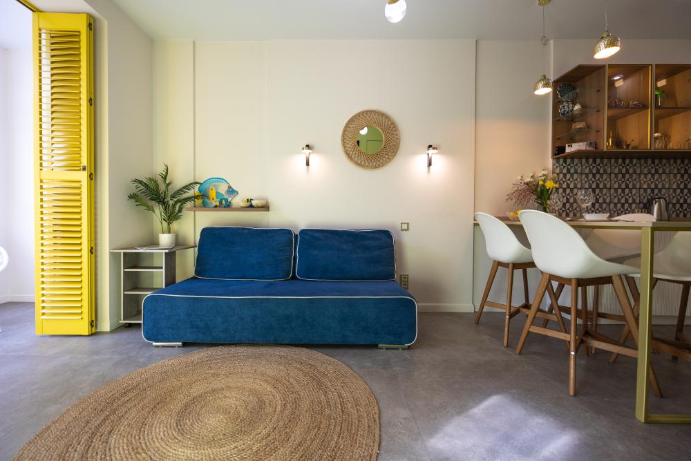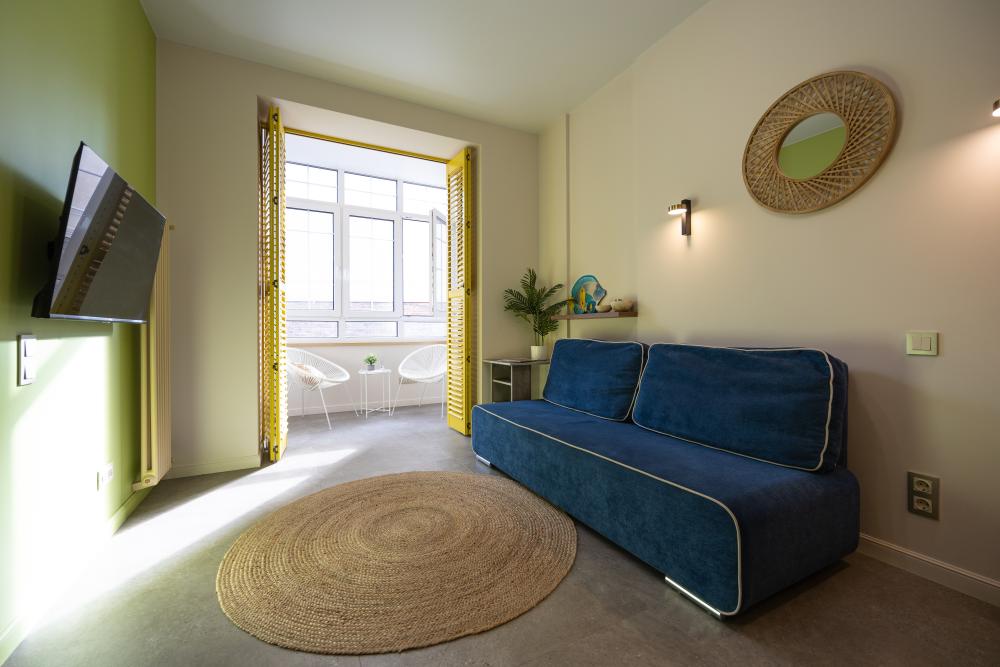 В квартире 2-спальная кровать в спальне + раскладной 1,5-спальный диван в гостиной. Просторная кухня со всем необходимым для готовки. Уютный открытый балкончик.