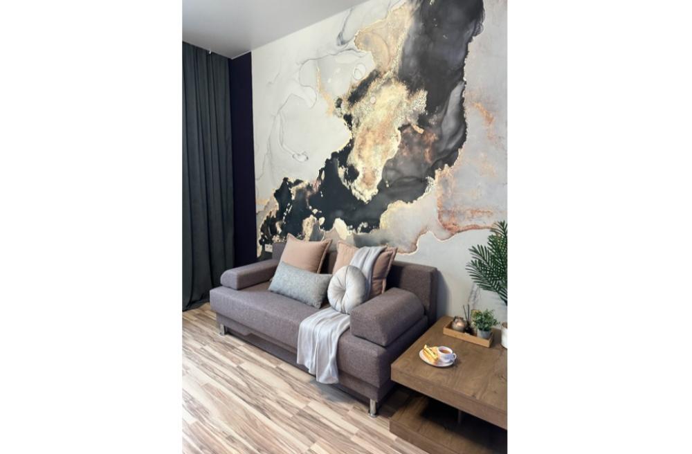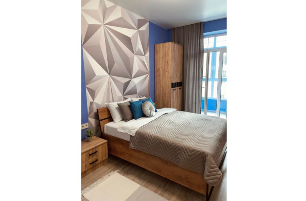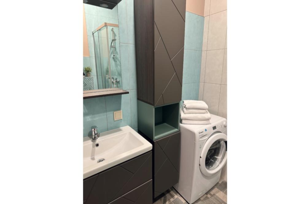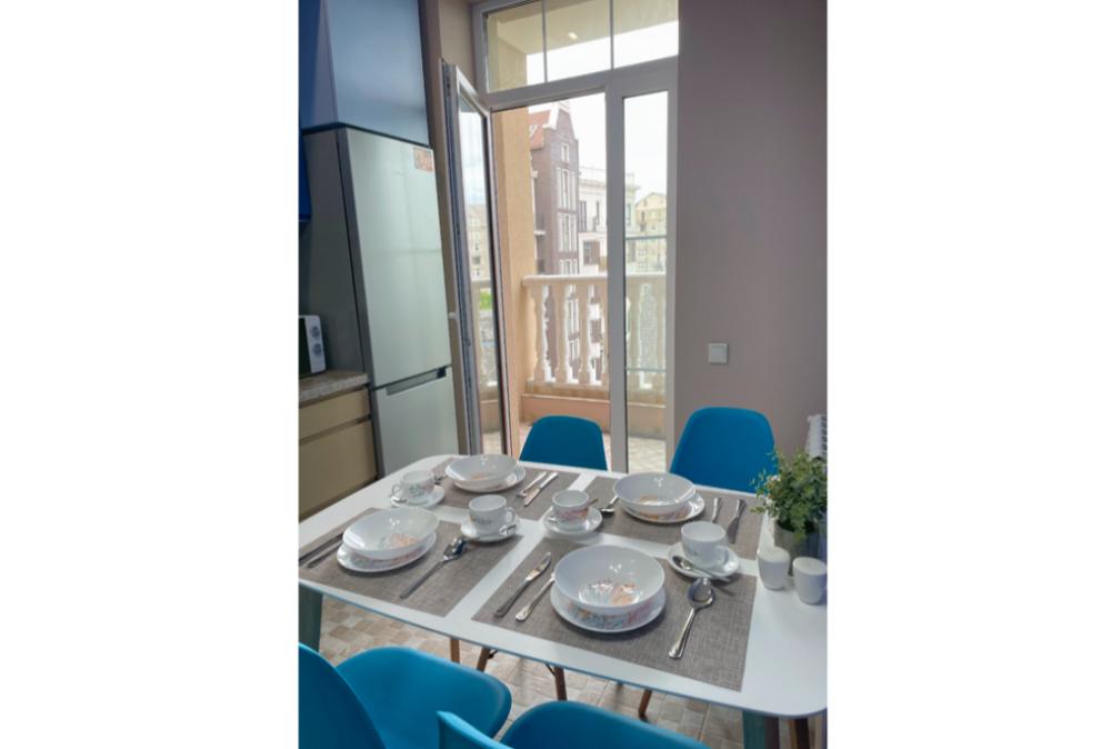 В апартаментах возможно комфортное размещение до 5 человек. В квартире 2-спальная кровать + 2-спальный раскладной диван и 1-спальный раскладной диван. Просторная кухня со всем необходимым для готовки. Уютный открытый балкончик. Просторная ванная комната, белоснежные полотенца. Просторная душевая. Фен. В квартире для гостей бесплатный WiFi. Кондиционер. Smart TV и Онлайн телевидение.