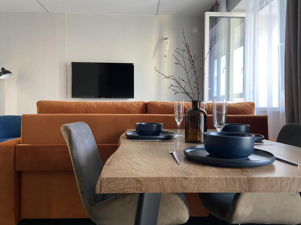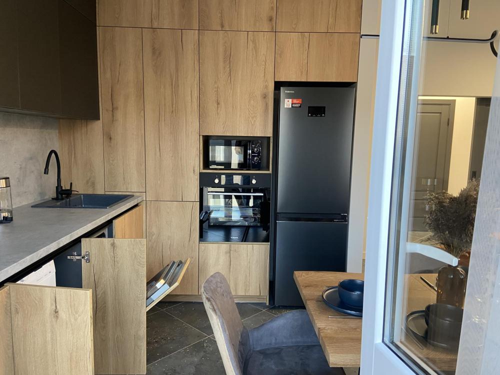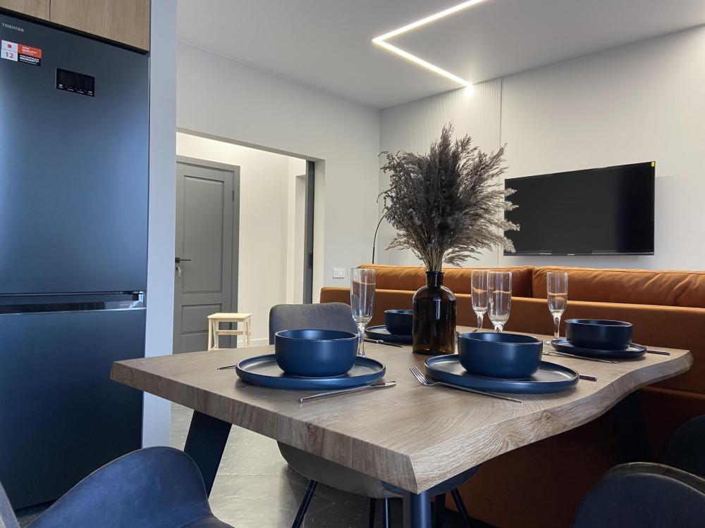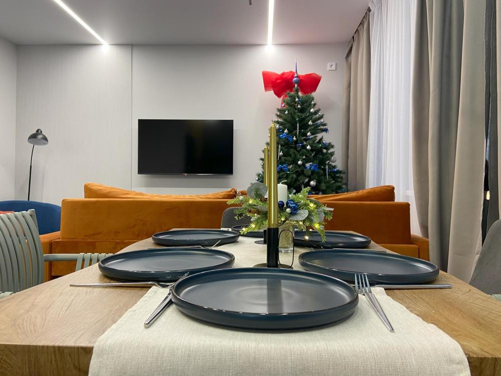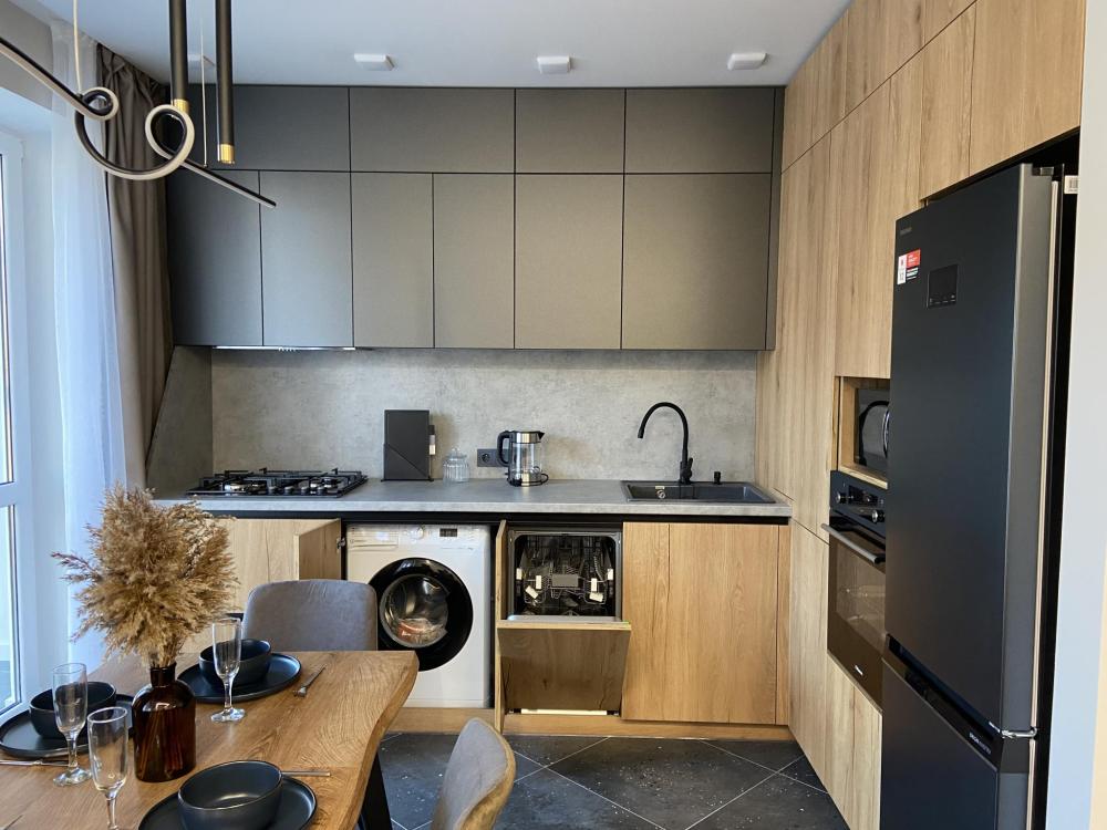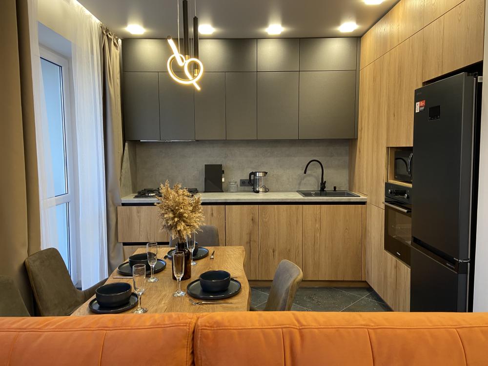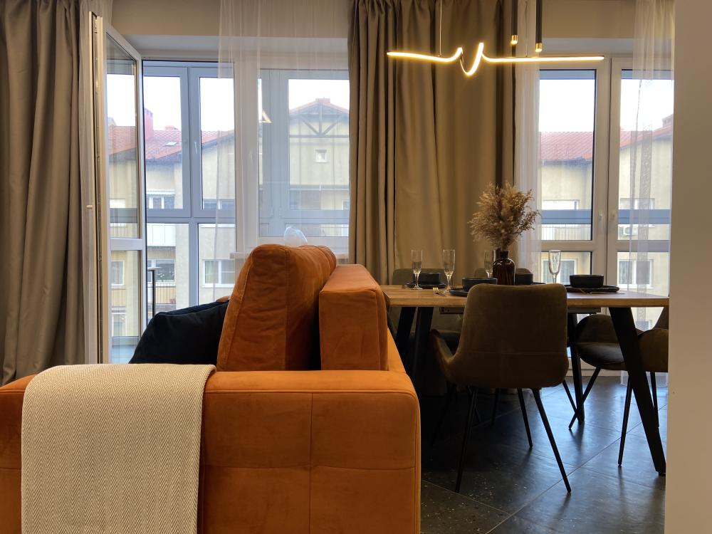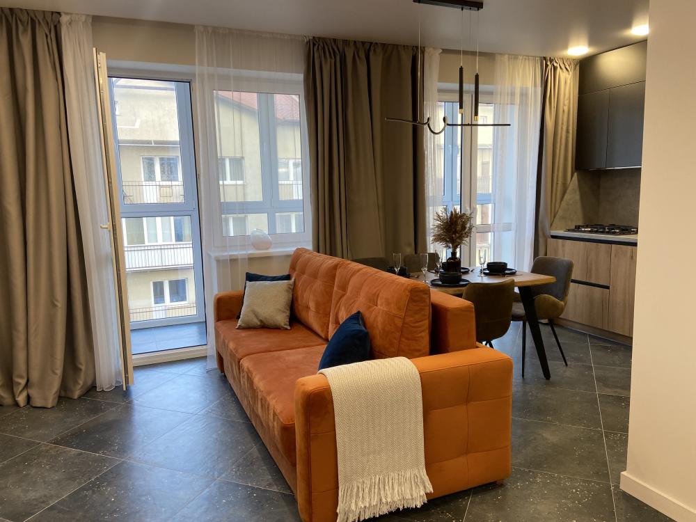 Дизайнерские двухкомнатные апартаменты премиум-класса с видом на море в современном жилом комплексе «Прибалтийская Ривьера». Идеальное расположение всего в нескольких минутах ходьбы от песчаного пляжа и благоустроенной набережной создает все условия для незабываемого отдыха. В непосредственной близости вас ждут уютные кафе с террасами, сувенирные лавки и продуктовые магазины. Просторные апартаменты площадью 45 м² полностью подготовлены для комфортного проживания четырех гостей и включают все необходимое для современной жизни. В распоряжении гостей высокоскоростной Wi-Fi, мультимедийная система Smart TV с доступом к потоковым сервисам, климатическая система с кондиционерами в каждой комнате. Спальная зона оборудована ортопедической двуспальной кроватью размера king-size и двумя раскладными евро-диванами в гостиной. Качественное постельное белье из натурального хлопка и комплект банных полотенец предоставляются для каждого гостя. Функциональная кухня оснащена всей необходимой техникой: холодильник с морозильной камерой, двухконфорочная варочная панель, микроволновая печь, электрочайник и набор посуды. Отдельный санузел с душевой кабиной и стиральной машиной дополнен набором косметических принадлежностей. Для вашего удобства предусмотрены фен, утюг с отпаривателем и гладильная доска. Особенностью апартаментов является утепленная лоджия с панорамным остеклением, где организована комфортная рабочая зона с креслом и столом. Из окон открывается вид на ухоженный внутренний двор с ландшафтным дизайном.