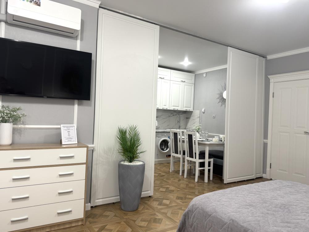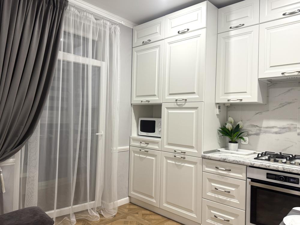 Квартира в самом центре города! Бесконтактное круглосуточное заселение! МЕСТОРАСПОЛОЖЕНИЕ (ЛОКАЦИЯ) КВАРТИРЫ: Апартаменты «Кранц Хаус» просторные и уютные апартаменты в классическом стиле категории комфорт класса в новом доме в центре Зеленоградска. Месторасположение апартаментов бесспорно является одним из лучших: всего 5 минут до пляжа и променада с многочисленными кафе и ресторанами. Море совсем близко, "до него рукой подать". В соседнем доме расположены: магазин «Пятерочка», кафе, суши-бар, алкомаркет, пивной, рыбный магазин и мн.другое. Благоустроенный двор с закрытой территорией с большой детской площадкой, фонтаном и общественной парковкой. ГИД-ЛИСТ (ГАЙД): Нашим гостям бесплатно предоставляется гид-лист с интересными местами и зарекомендованными ресторанами и кафе Зеленоградска и Калининграда. Отправляем в мессенджер WhatsApp/Telegram после бронирования. Внимание! При бронировании на 1 сутки в стоимость аренды не входит уборка, доплата составит одна тысяча пятьсот рублей. Максимальное кол-во гостей: 4 чел., дети от 5-ти лет. На время проживания вносится страховой депозит 5000 руб. Возвращается на карту в день выезда после уборки квартиры. Время заезда после 15-00 ч. Время выезда до 11-00 ч. Ранний заезд/поздний выезд возможны (за дополнительную плату), обсуждаются заранее. Заезд/выезд бесконтактно. В день заезда после звонка нам о готовности к заселению, присылаем инструкцию по бесконтактному заселению в мессенджер. Территория дома огорожена. Вход, въезд/выезд на территорию по звонку арендодателю (аренда более 3-х суток - предоставляем пульт от ворот, залог за пульт 2500 руб.). Отчетные документы предоставляются по требованию. В КВАРТИРЕ к ВАШИМ УСЛУГАМ: Спальные места: - двуспальная кровать 150х200 с высоким, мягким матрасом, - диван мягкий двухместный со спальным местом 160/200; - белье страйп-сатин (хлопок 100%); - полотенца 100% хлопок на каждого гостя комплект из 3-х шт. Дополнительные комплекты белья и полотенец (по требованию) предоставляем за отдельную плату - 1000 руб. Все средства ватные диски, ушные палочки, одноразовые лезвия, средства для цикла женщин; гель для стирки. Бытовая техника: - 1 кондиционер в комнате (сплитсистема); - смарт-тв; - интернет, кабельное тв, wi-fi; - стиральная машина автомат; - утюг, гладильная доска; - фен; - микроволновая печь; - растворимый кофе, чаи черный/зеленый, сахар входят в стоимость аренды. Квартира соответствует всем стандартам комфортного пребывания как на длительный срок, так и на одни сутки. ПРАВИЛА ПРОЖИВАНИЯ: Количество гостей в апартаментах не должно превышать кол-ва гостей, указанного в брони. Не нарушать тишину после 21-00 часа, чтобы не беспокоить соседей (не слушать громко музыку и т.д) У нас не курят (курение любого типа курительных приспособлений на всей территории апартаментов и в подъезде, разрешено только на открытом балконе кухни; У нас не употребляют наркотические вещества; Квартира не предназначена для вечеринок; У нас не проживают с животными. ВАЖНО! При нарушении правил аренды и жалоб от соседей следует немедленное выселение без возврата страхового депозита.