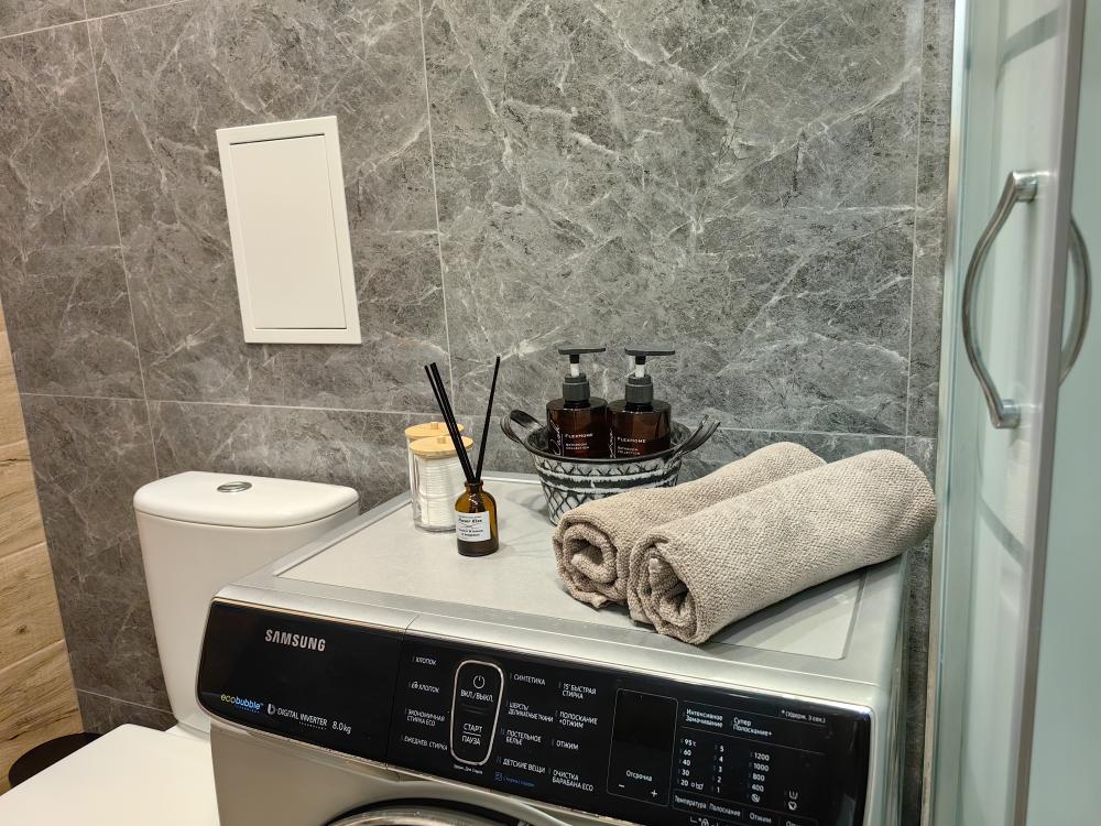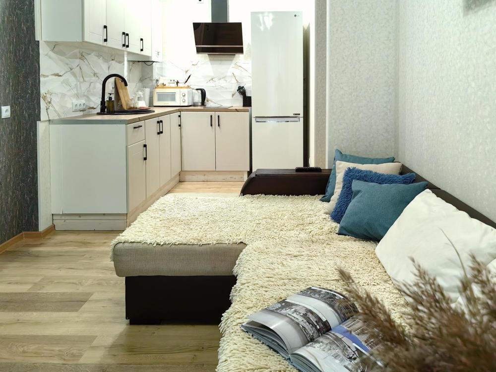 ?В апартаментах ЕСТЬ ВСЕ НЕОБХОДИМОЕ как для остановки на пару дней, так и для длительного проживания: полный комплект посуды, фильтр питьевой воды, кровать King-size с ортопедическим матрасом Аскона, диван на кухне, уютная лоджия для вечерних посиделок, рабочий стол. Нашим гостям мы предоставляем чай и кофе.