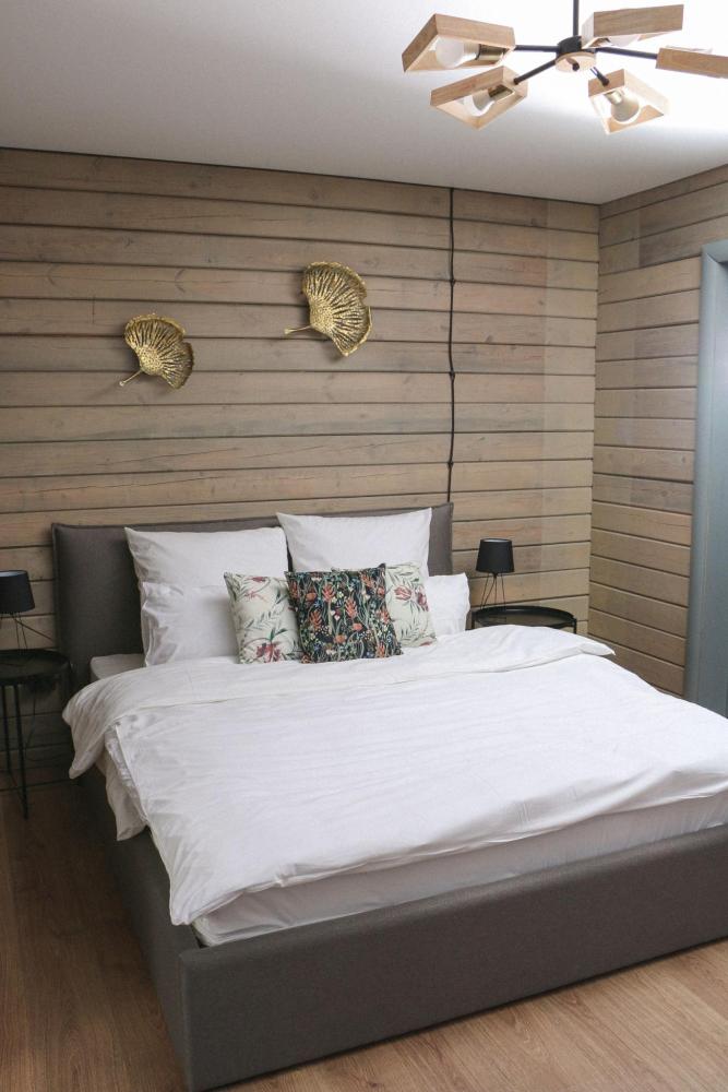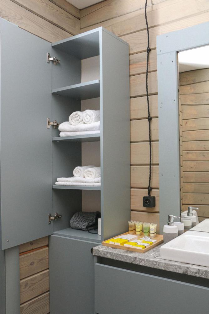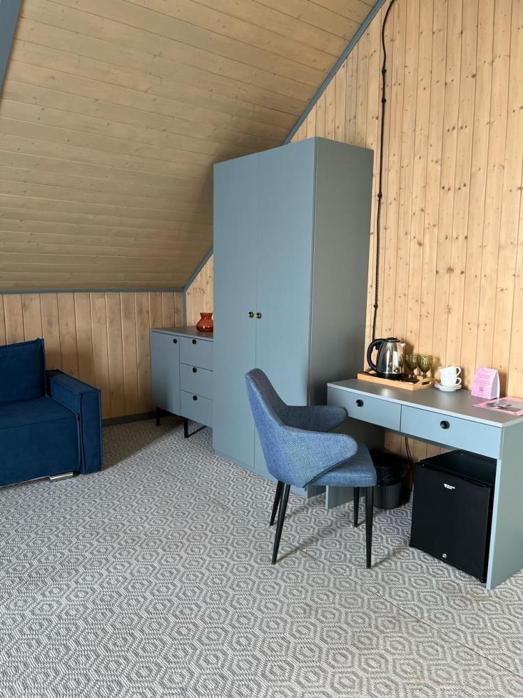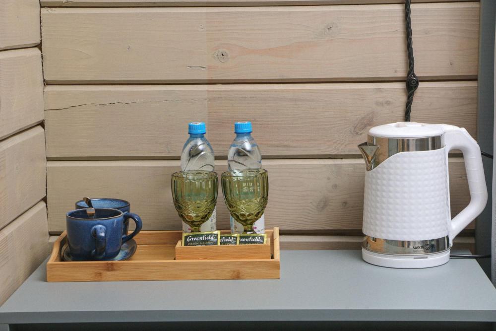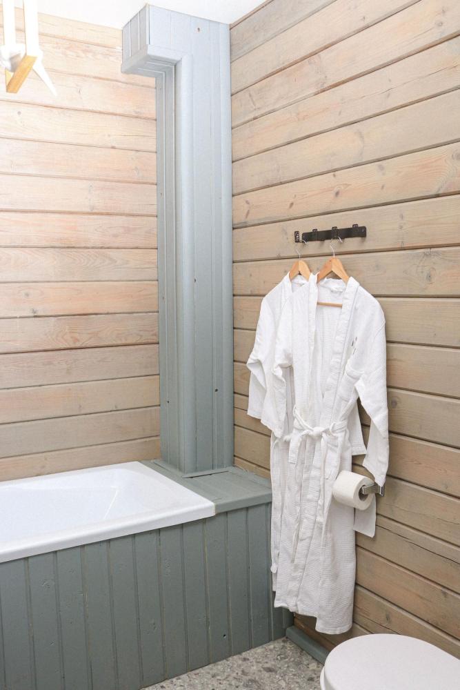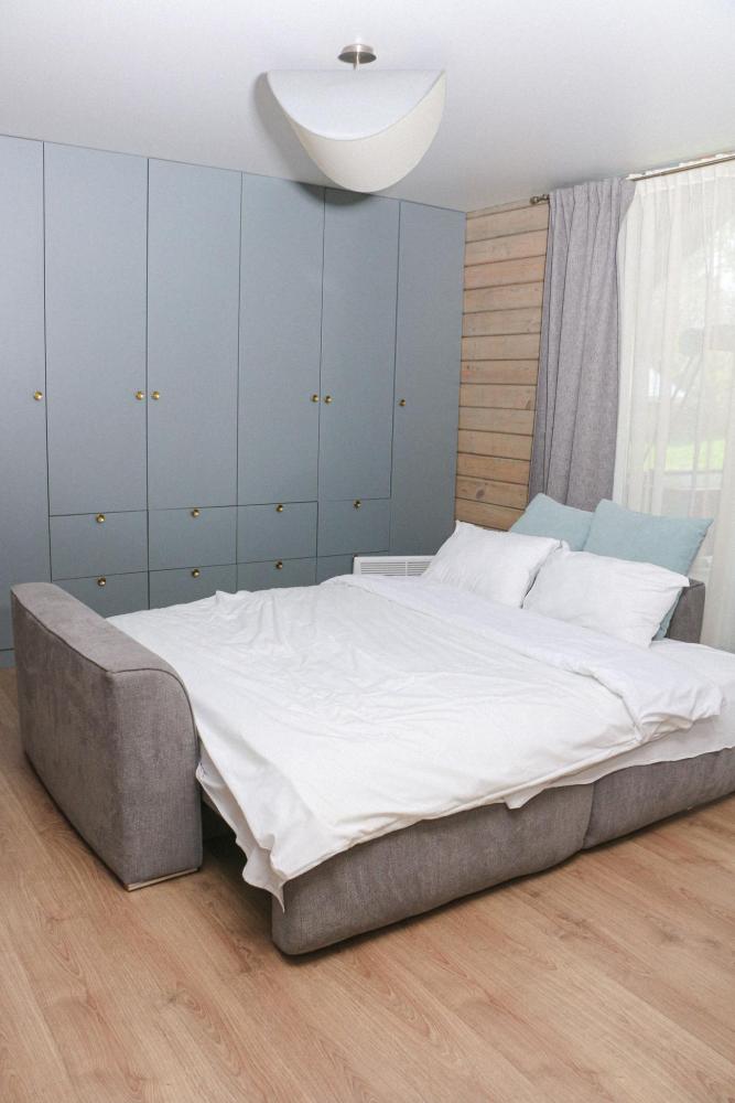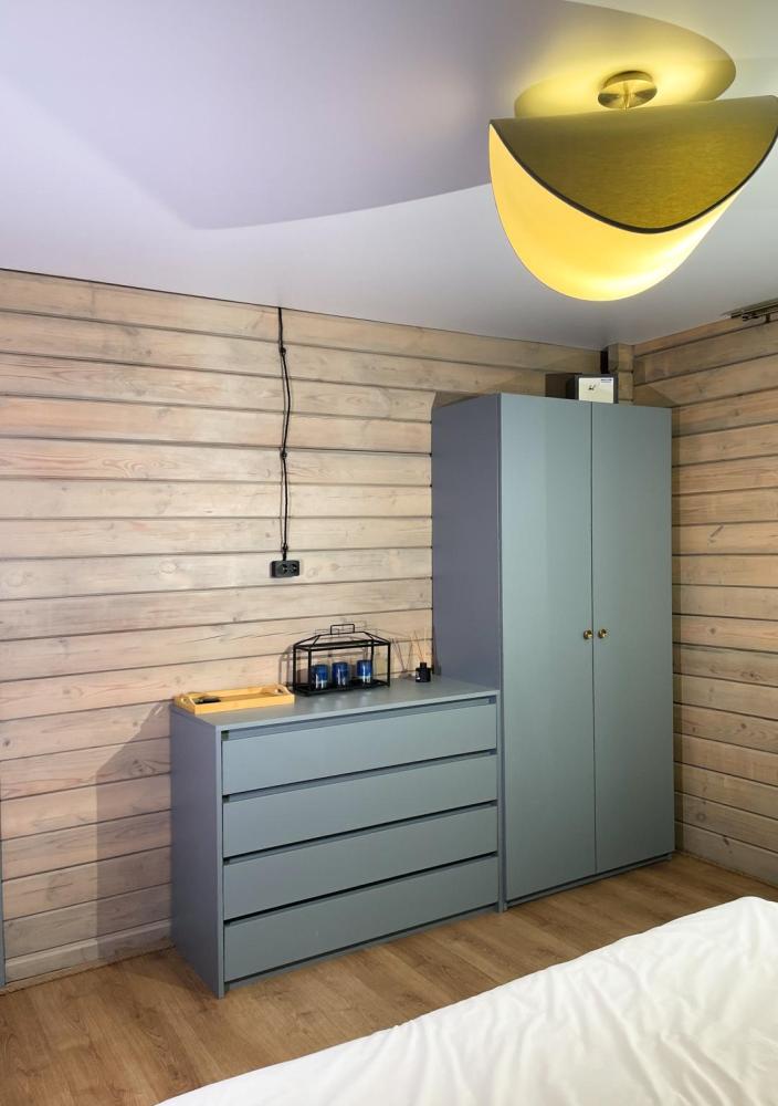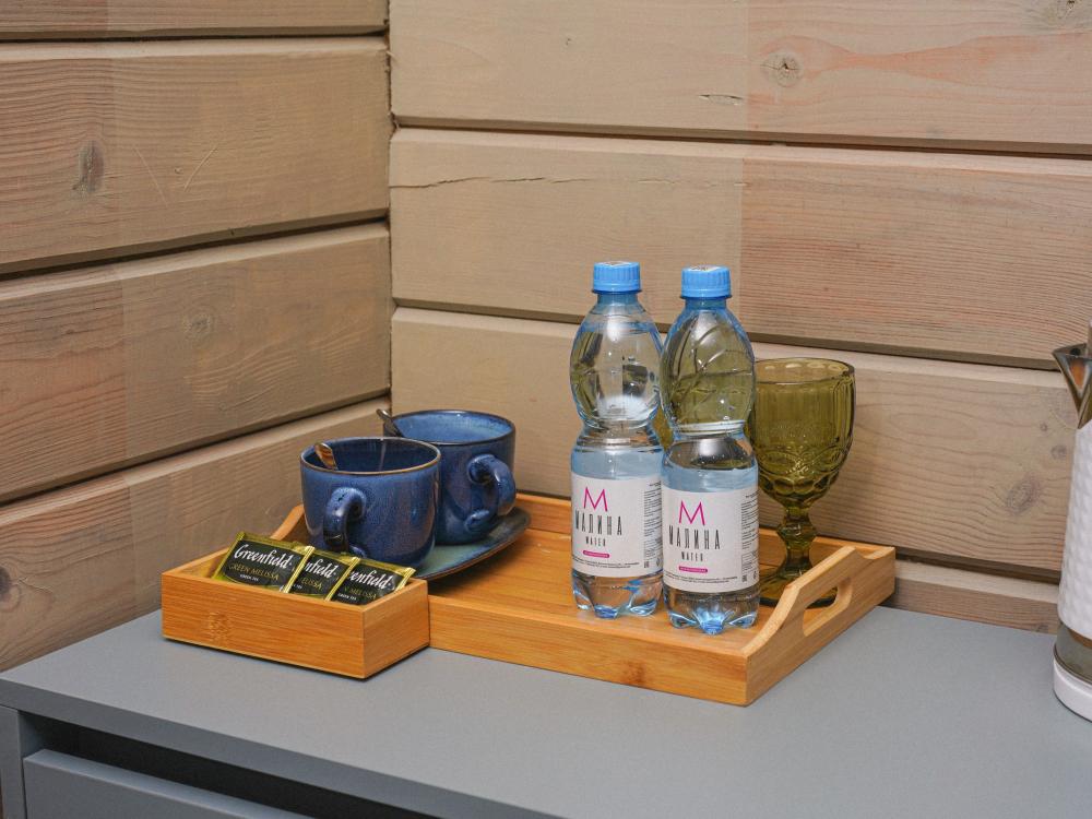 Лаконичным и стильный дизайн, позволяющий комфортно разместиться двоим гостям (возможно размещение дополнительно двух человек). Оснащен двухспальной кроватью и двухместным диваном,ванной комнатой, шкафом для одежды, обогревателем, чайник, стаканы, кружки. В ванной комнате предоставляются принадлежности для душа, фен, халат, тапочки, полотенца.