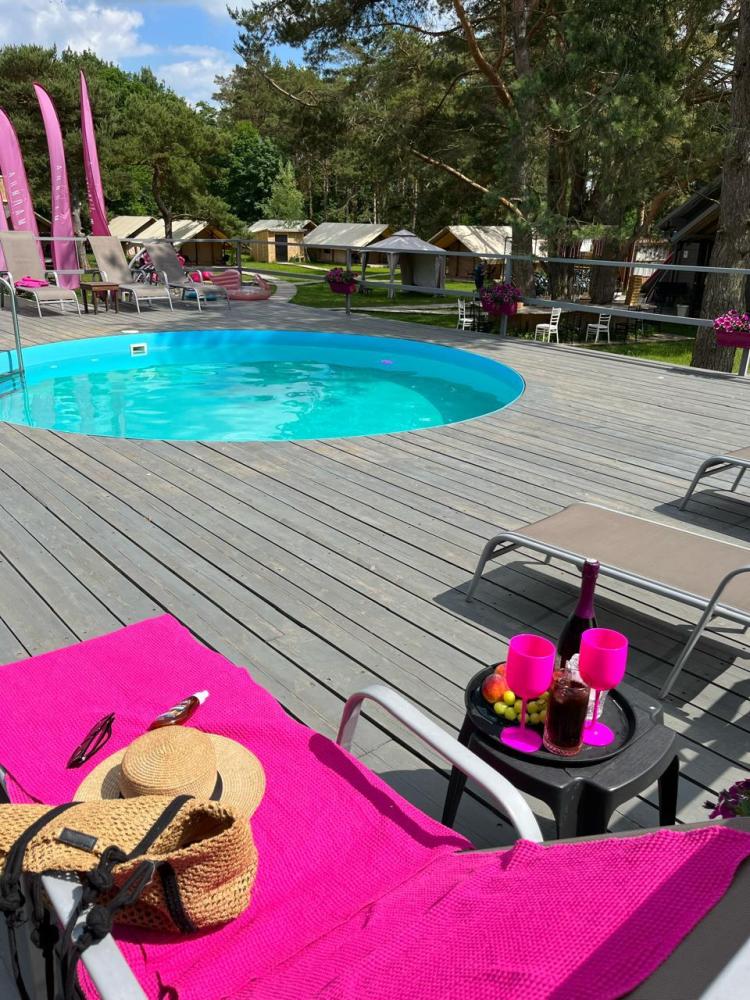 Улучшенный сафари-шатер с гидромассажной ванной. Подойдет для новобрачных. Открытое пространство между спальней и ванной комнатой.