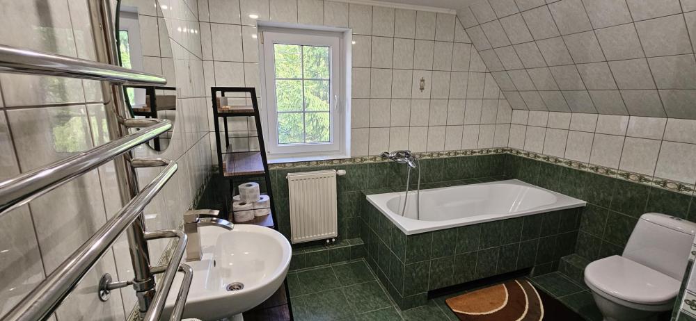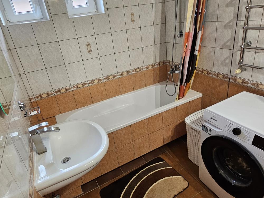 Просторный дом, рассчитанный на 10 гостей и оборудованный всем необходимым для комфортного проживания. В доме 5 отдельных спален с двуспальными кроватями, две ванных комнаты оснащены: ванна, туалет, фен, полотенца, гель, жидкое мыло, шампунь, туалетная бумага. Принадлежности для стирки: порошок и гель. Для маленьких гостей имеется манеж-кровать и ванночка для купания. Кухня оборудована газовой плитой, микроволновой печью, электрическим чайником, посудой для приготовления еды, тарелками, чашками, столовыми приборами и штопором.