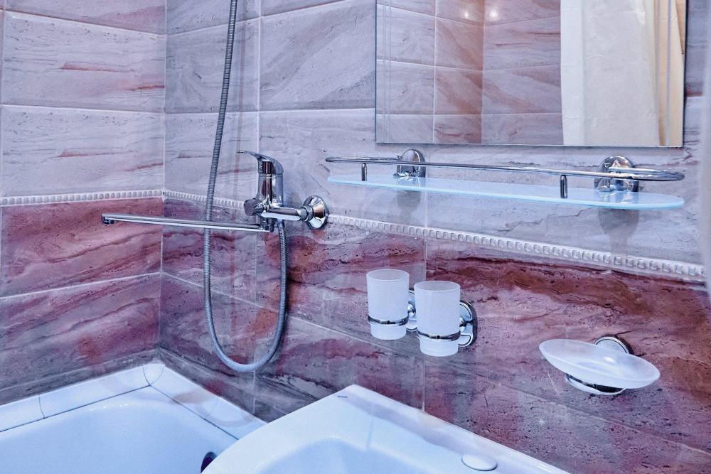 Комфортный двухкомнатный номер с отдельной спальней и гостиной. В номере: 2-спальная кровать, кожаный диван, встроенный шкаф, кресла, телефон, телевизор. В прихожей комнате: встроенный шкаф с холодильником, фен, утюг, посуда, санузел с душевой кабиной. В номере есть балкон, с которого открываются прекрасные виды на окрестности.