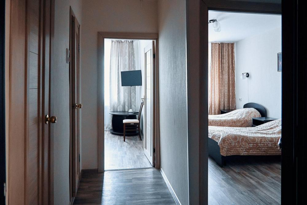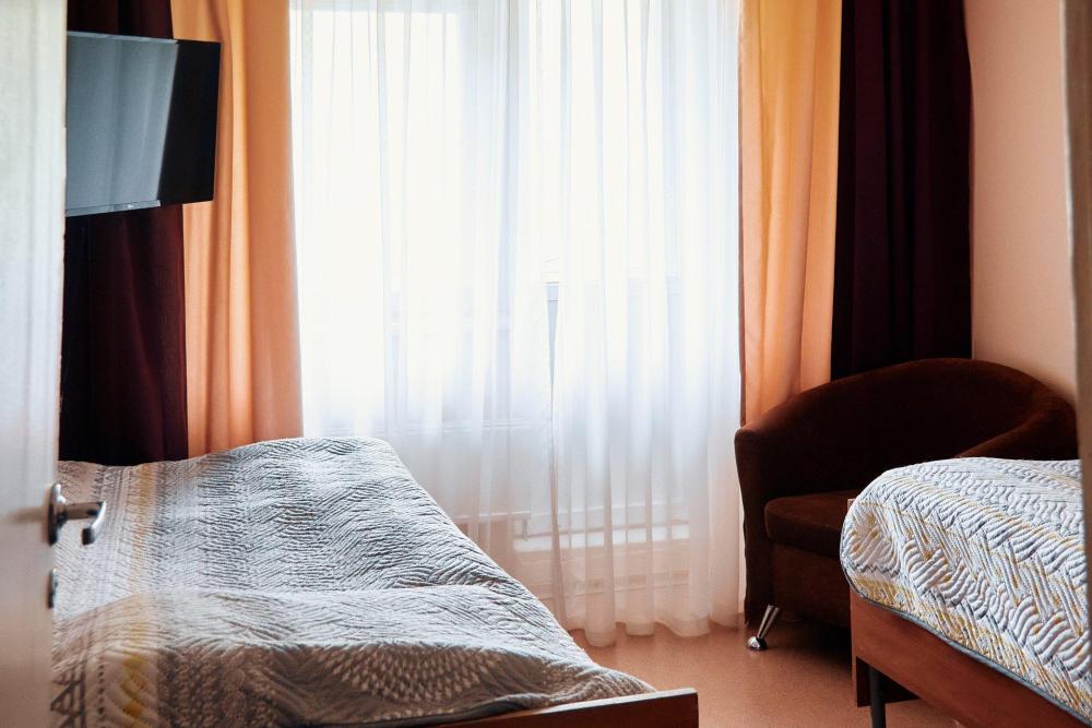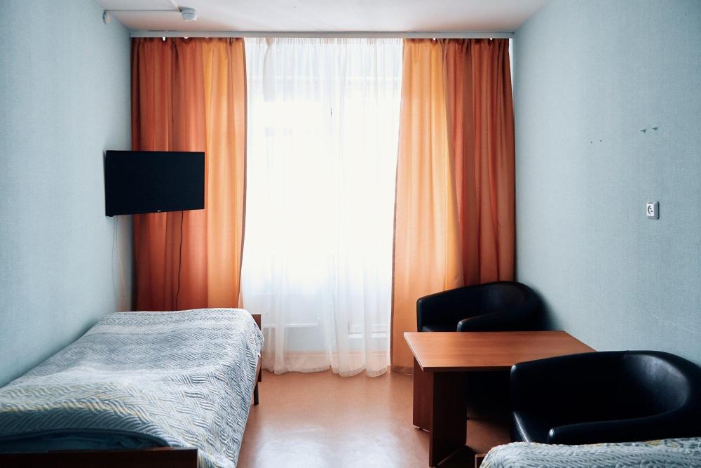 Стандартный номер состоящий из 2-х комнат. Одна односпальная кровать, кресло, журнальный стол, тумбочка, телевизор, посуда, удобства общие на этаже.