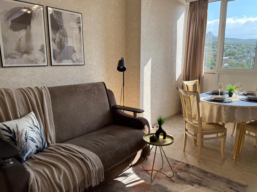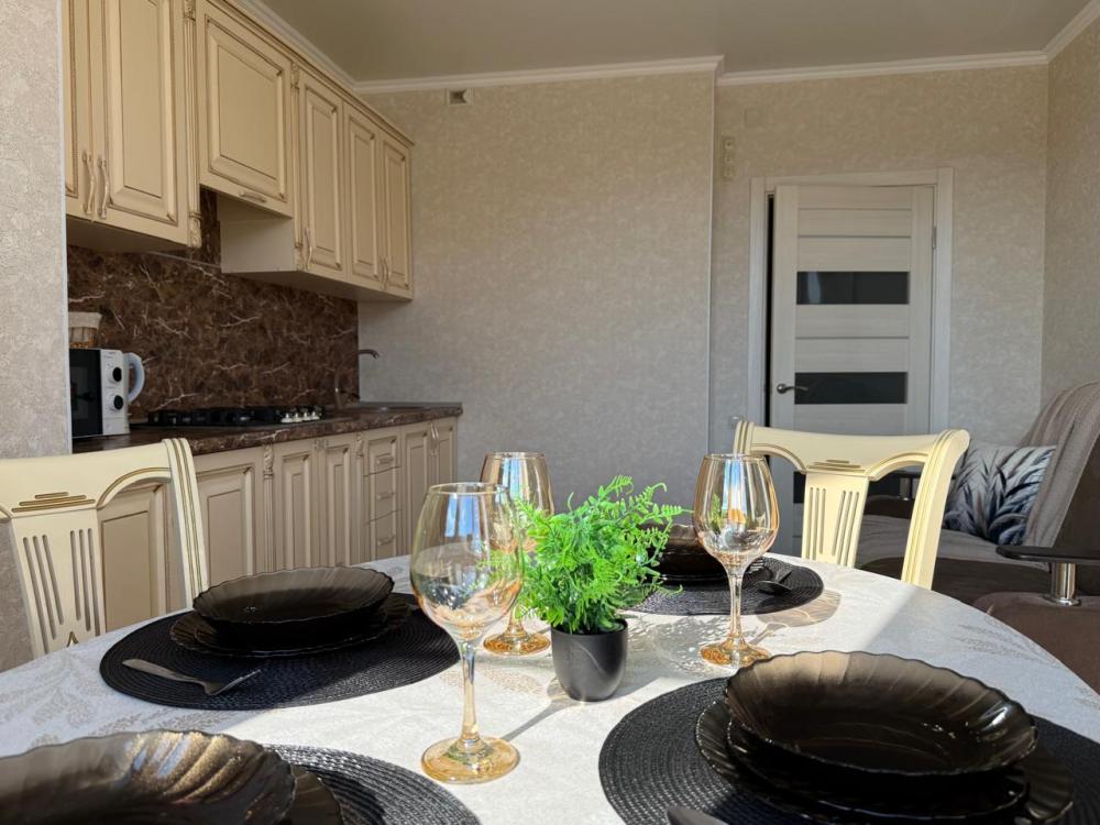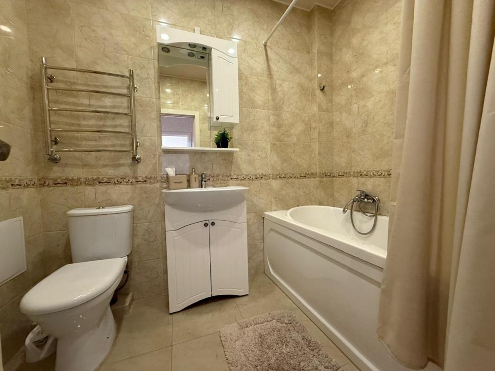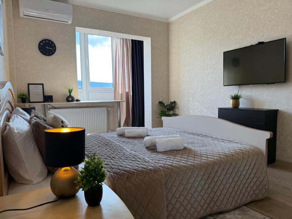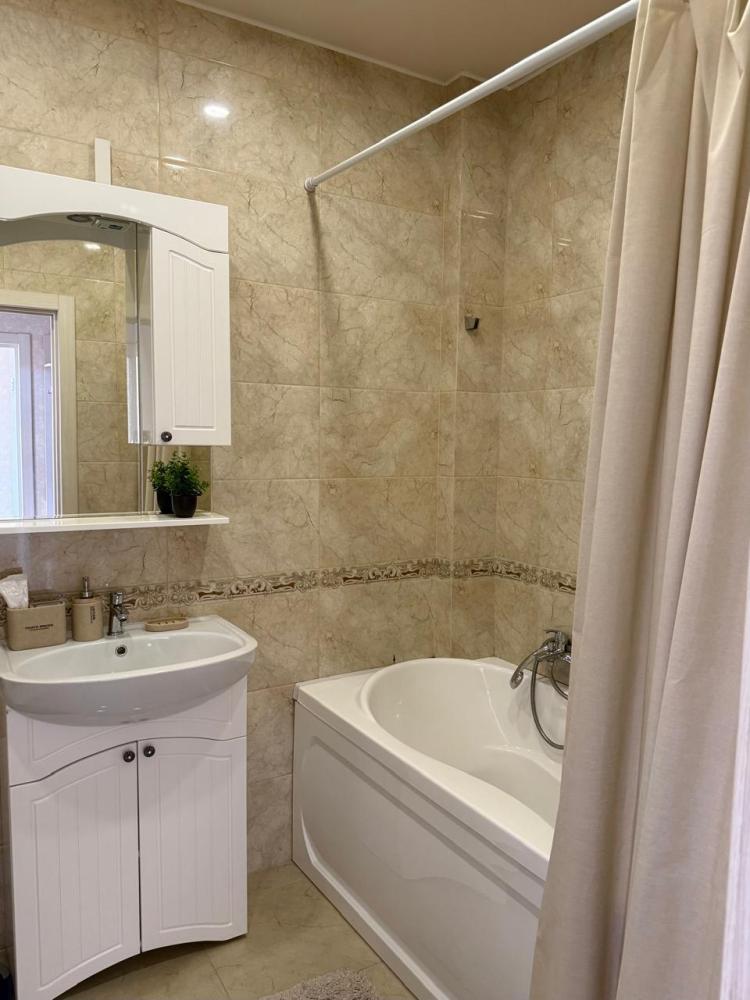 Апартаменты вместимостью до 4 человек. В апартаментах есть все, что необходимо для комфортного проживания: двуспальная кровать 160х200 см с ортопедическим матрасом, раскладной диван 140х200 см, постельное белье и полотенца, кондиционер, телевизор, Wi-Fi, холодильник, газовая плита, микроволновая печь, электрочайник, посуда, гигиенические и гладильные принадлежности, водонагреватель, теплые полы, стиральная машина, сушилка для белья, фен.