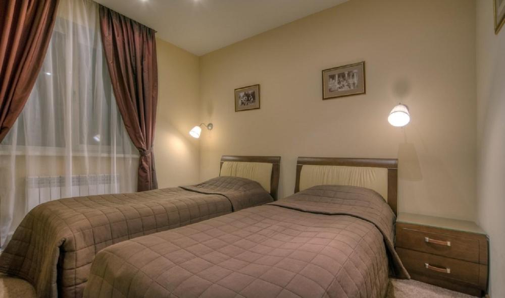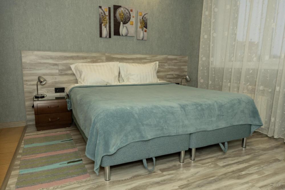 Номер "ЛЮКС" это двухкомнатный, двухместный номер c элегантной отделкой. В номере двуспальная кровать размера “king-size”, диван, который можно использовать как дополнительное место для двух человек, косметический столик с зеркалом. Для Вашего удобства: посудный шкаф, вода-комплимент, чайник, телефон, журнальный стол, телевизор, кондиционер, холодильник, гардероб. Индивидуальный сейф для хранения ценных вещей. Ванная комната с большой ванной укомплектована всем необходимым: халаты, полотенца, фен и косметические принадлежности.