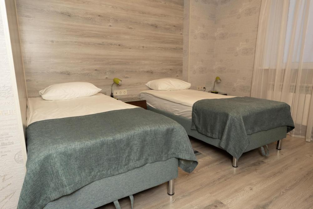 Стандартные номера сочетают в себе современный стиль и комфорт. Номера выдержаны в теплой цветовой гамме. Подходят для тех, кто путешествует вдвоём и стремится обеспечить комфортное проживание. Номера оборудованы всем необходимым для длительного пребывания в отеле. В 2-х местных номерах две односпальные кровати или одна кровать размера “king-size”. В каждом номере этой категории: шкаф с зеркалом, рабочий стол, телевизор, сейф, кондиционер, городской телефон, бесплатный WI-FI. Ванная комната с душем, фен, комплект полотенец, одноразовые тапочки, косметические принадлежности.