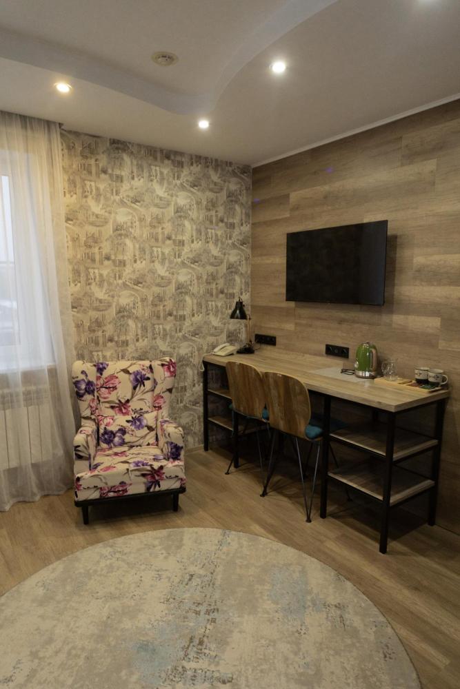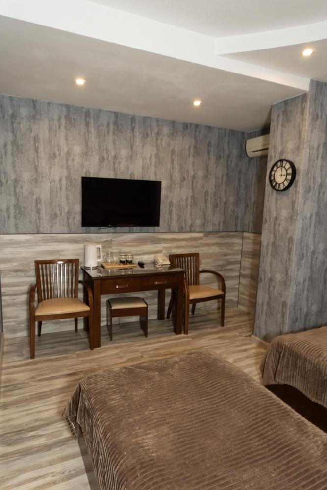 Номер оборудован всем необходимым для длительного пребывания в отеле. В номере имеются шкаф, рабочий стол, столик для чая, электрический чайник, холодильник, зеркало, телевизор, кондиционер, телефон (городской), бесплатный WI-FI. Также присутствует ванная комната с душем, фен, комплект полотенец, одноразовые тапочки, косметические принадлежности.