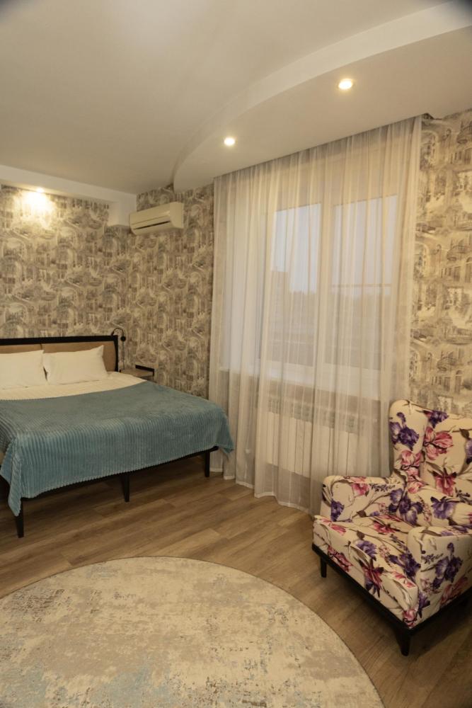Однокомнатные апартаменты с уютной обстановкой,оснащённые мини-кухней с варочной панелью, холодильником, микроволновой печью,электрическим чайником, необходимой посудой для приготовления и сервировки. В номере: большая двухспальная кровать, большой TV c USB, WI-FI, отдельная ванная комната с душевой кабиной, стиральной машиной, сушилкой для белья, феном, полотенцами. По запросу: утюг, гладильная доска,