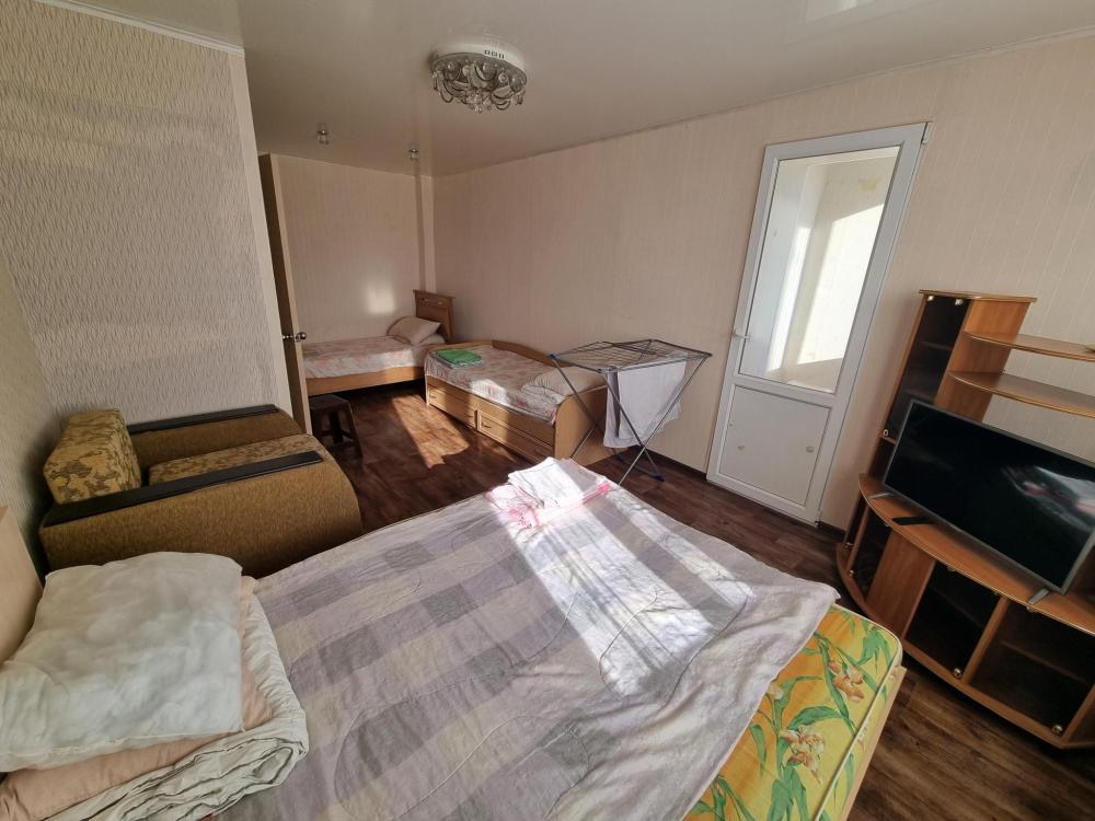 Чистая уютная однокомнатная квартира, чистое постельное бельё, полотенца. В квартире есть вся бытовая техника, посуда, телевизор, кабельное ТВ, Wi-Fi, стиральная машина автомат, СВЧ печь, чайник, плитка, холодильник, фен, утюг и все необходимое для комфортного проживания. Спальные места: два раскладных дивана, две раздельные кровати. Рядом остановки транспорта, магазины и кафе. Во дворе дома имеется парковка. Курение в квартире запрещено (только балкон и улица). При заселении необходимо иметь документ удостоверяющий личность и залог. Не сдаётся для шумных компаний и проведения мероприятия.