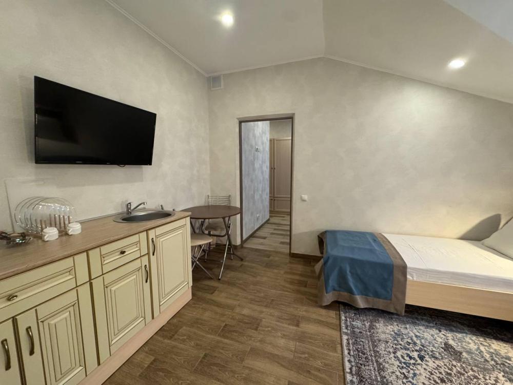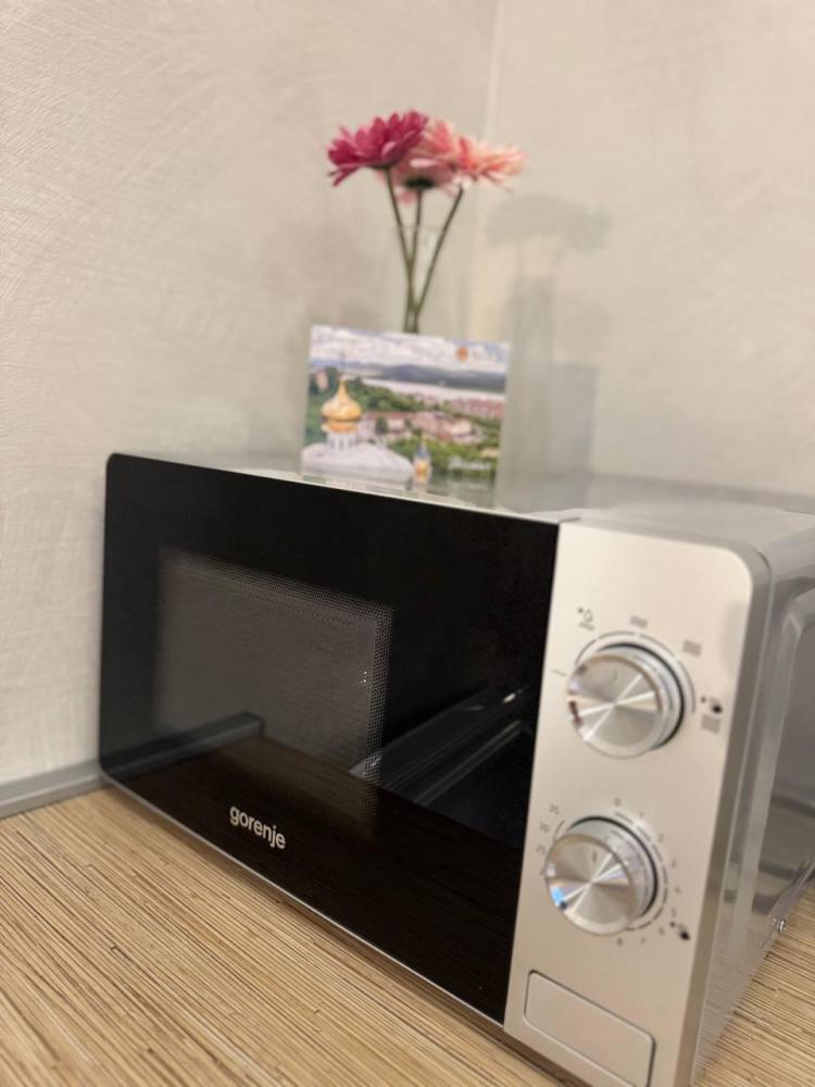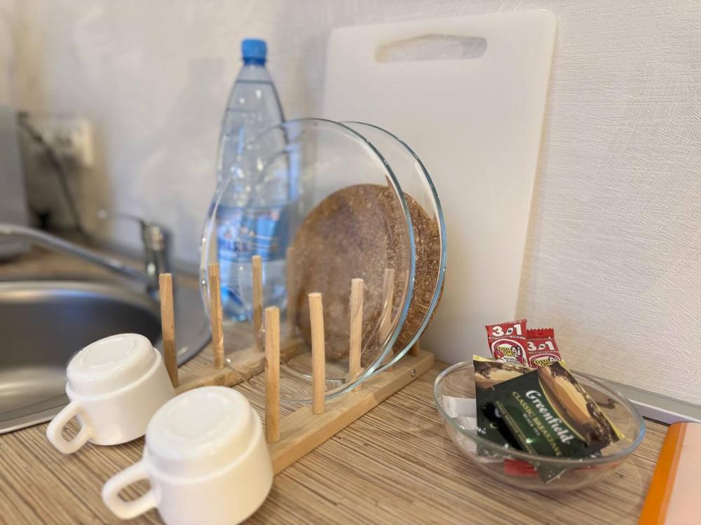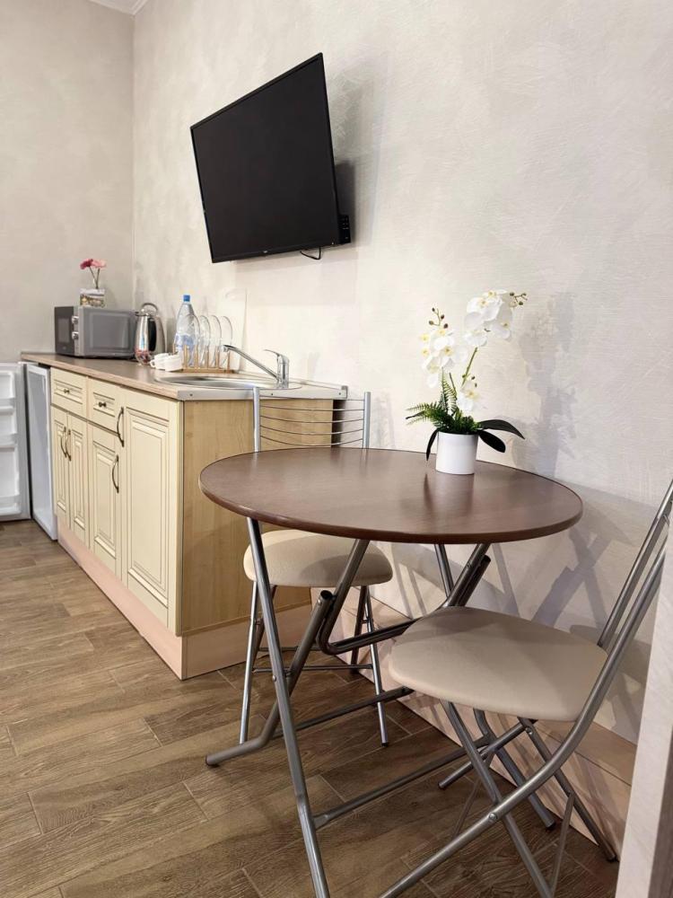 В номере оборудованные мини-кухней , в каждом номере кухонный уголок: раковина, микроволновка, электрочайник, посуда, приборы. По запросу предоставляется индукционная плита и посуда для приготовления пищи: кастрюли, сковороды.