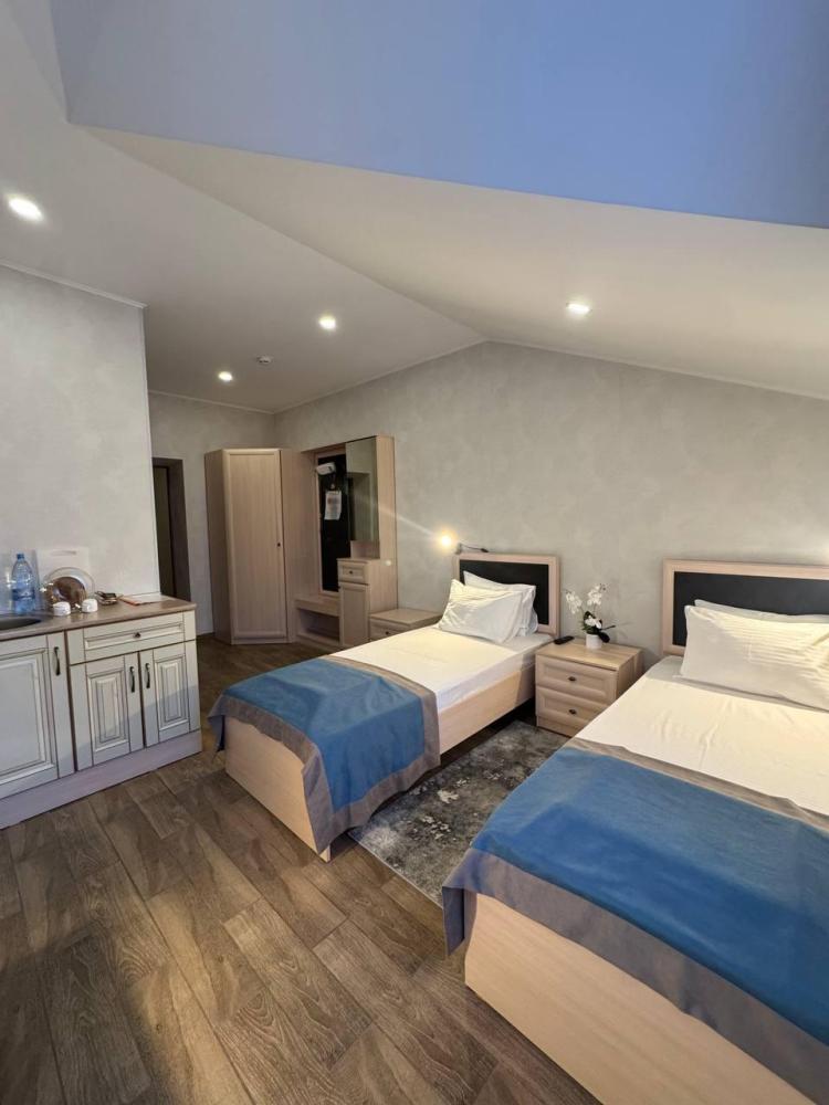 Три номера для проживания 2-х человек, с возможностью дополнительного размещения.Общая площадь номера- 30 кв.м.В номере одна 2-х спальная кровать, небольшой раскладной диван, 2 прикроватные тумбочки, письменный стол, стул, журнальный столик, телефон, ж/к телевизор, платяной шкаф, зеркало, мини-бар, холодильник, фен. Душевая кабина, санузел, зеркало, умывальник, туалетные принадлежности. Пол- ламинат, ковер, прикроватный коврик.