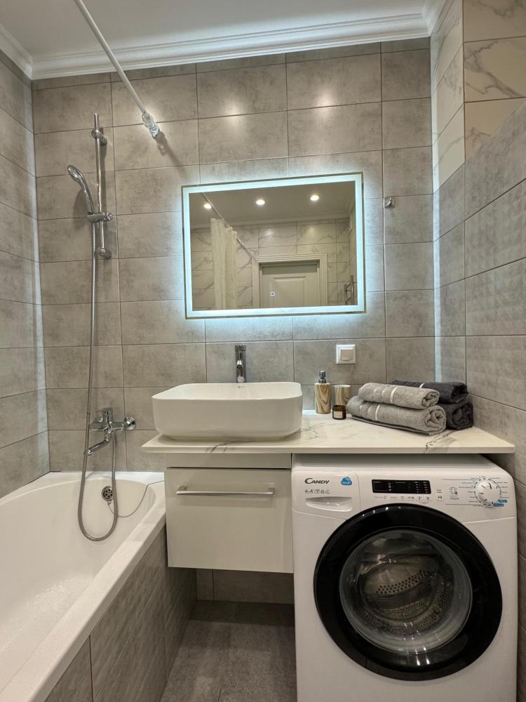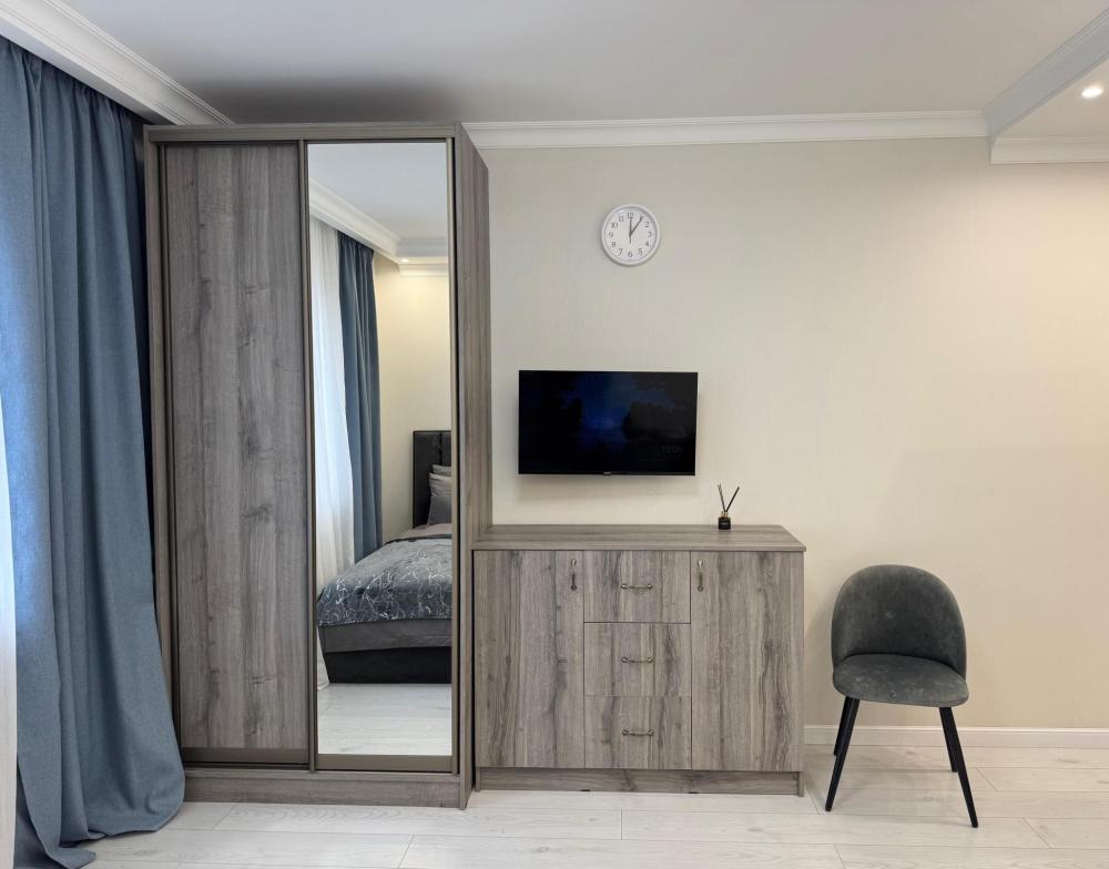 В апартаментах возможно размещение 4 человек. Спальные места: двуспальная кровать, раскладной диван. На кухне необходимая посуда и техника: варочная панель, чайник, холодильник. К услугам гостей: телевизор, wi-fi, стиральная машина, постельное белье, полотенца.